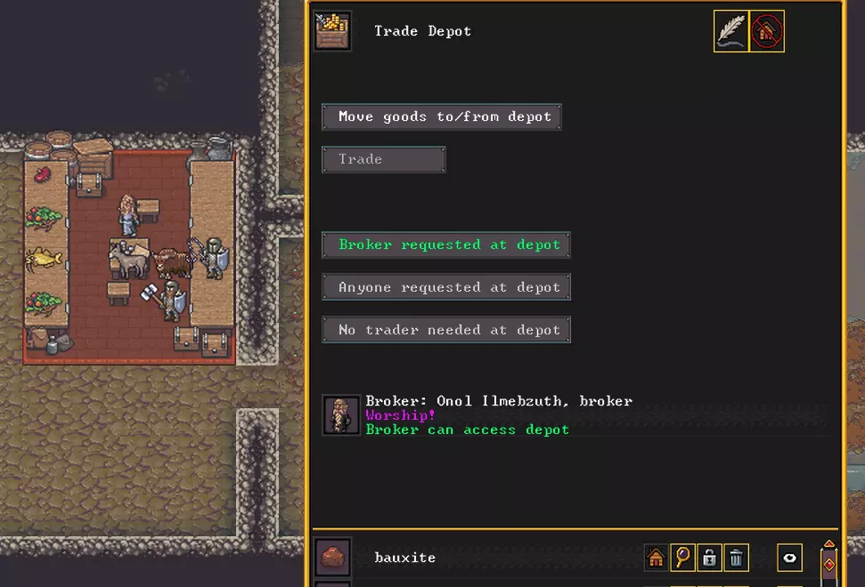 交易界面我就不描述了,任何在游戏里交易过东西的人都能直观理解,不过用什么来交易才是问题。首先我们感兴趣的是【工匠工坊】,在这里可以用多余的资源制作各种戒指、护身符之类的物品。还有什么呢?【珠宝工坊】,可以加工开采到的宝石,并用它们来强化成品装备。铁匠铺可以将金锭及其他任何金属锭制成硬币。原则上,任何物品都适用,尤其是品质良好且由贵重材料制成的物品。 而购买那些我们在生产上存在较大困难的物品是可行且必要的。商队也是可以被摧毁的,比如堵住房间入口然后用水淹没房间。不过如果往你这边来的商人经常死掉,其他人就会察觉到不对劲,可能就不会再靠近你了。但为了搞笑偶尔这么做一次也不是不行。 大概就是这样。