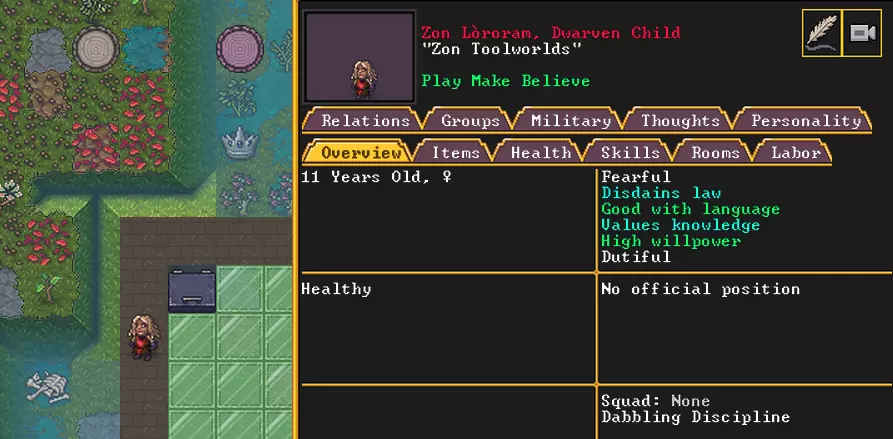 可以默认选择模板,例如金属盔甲,也可以自行调整每个细节。不过我们就不纠结了,直接选择金属盔甲。本来可以创建弓箭手,但他们现在满是bug,所以还是算了。 要训练士兵,我们需要兵营。兵营房间内必须有床、武器架、盔甲架,以及与该部队绑定的兵营区域。不过目前兵营的武器存储功能也存在bug,所以我建议在兵营附近建造一个小型的武器和盔甲仓库。兵营最好建在靠近危险区域的地方,比如通往地表的出口附近,这样敌人在试图接近重要地点时,就必须先经过士兵。