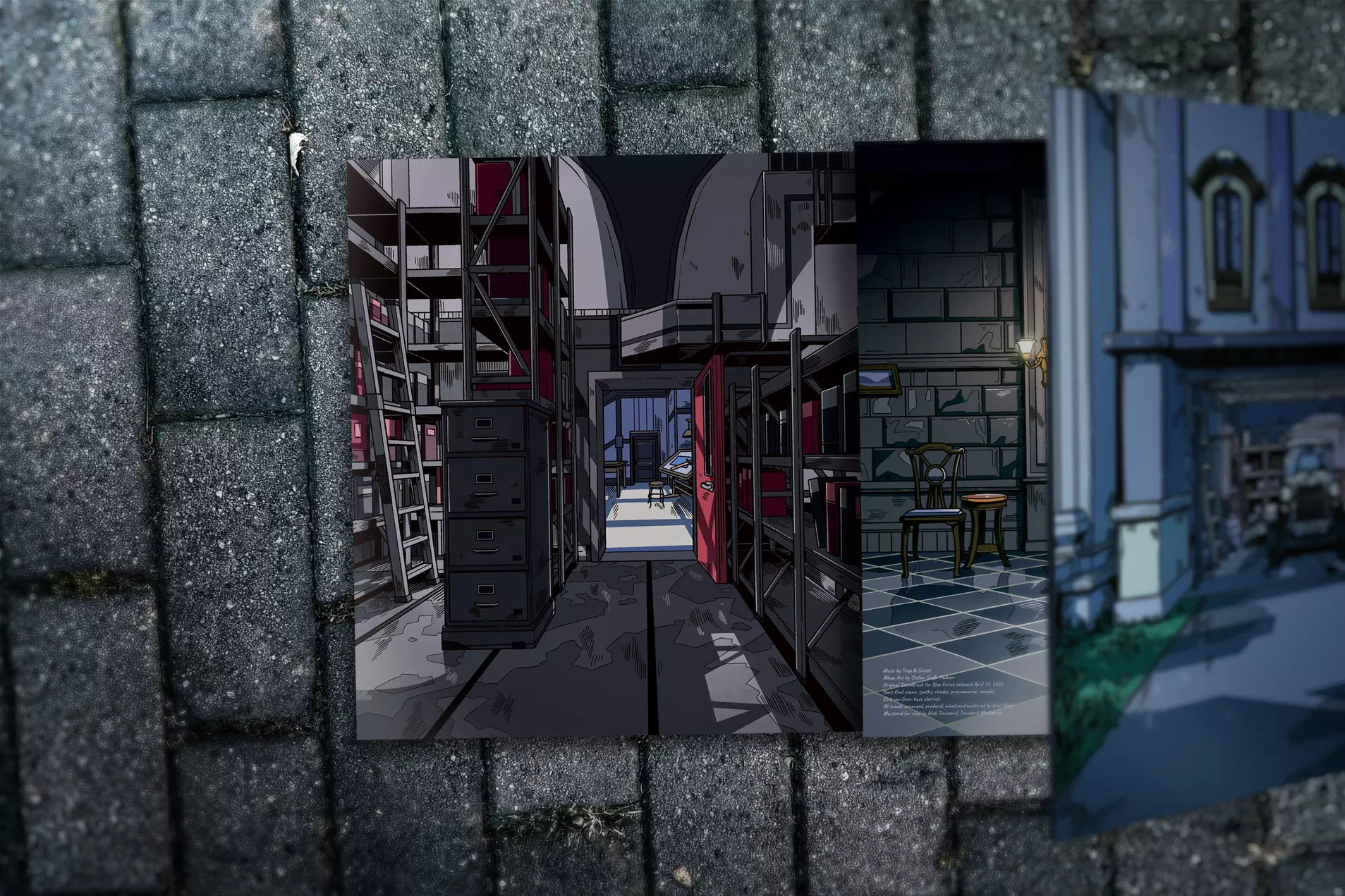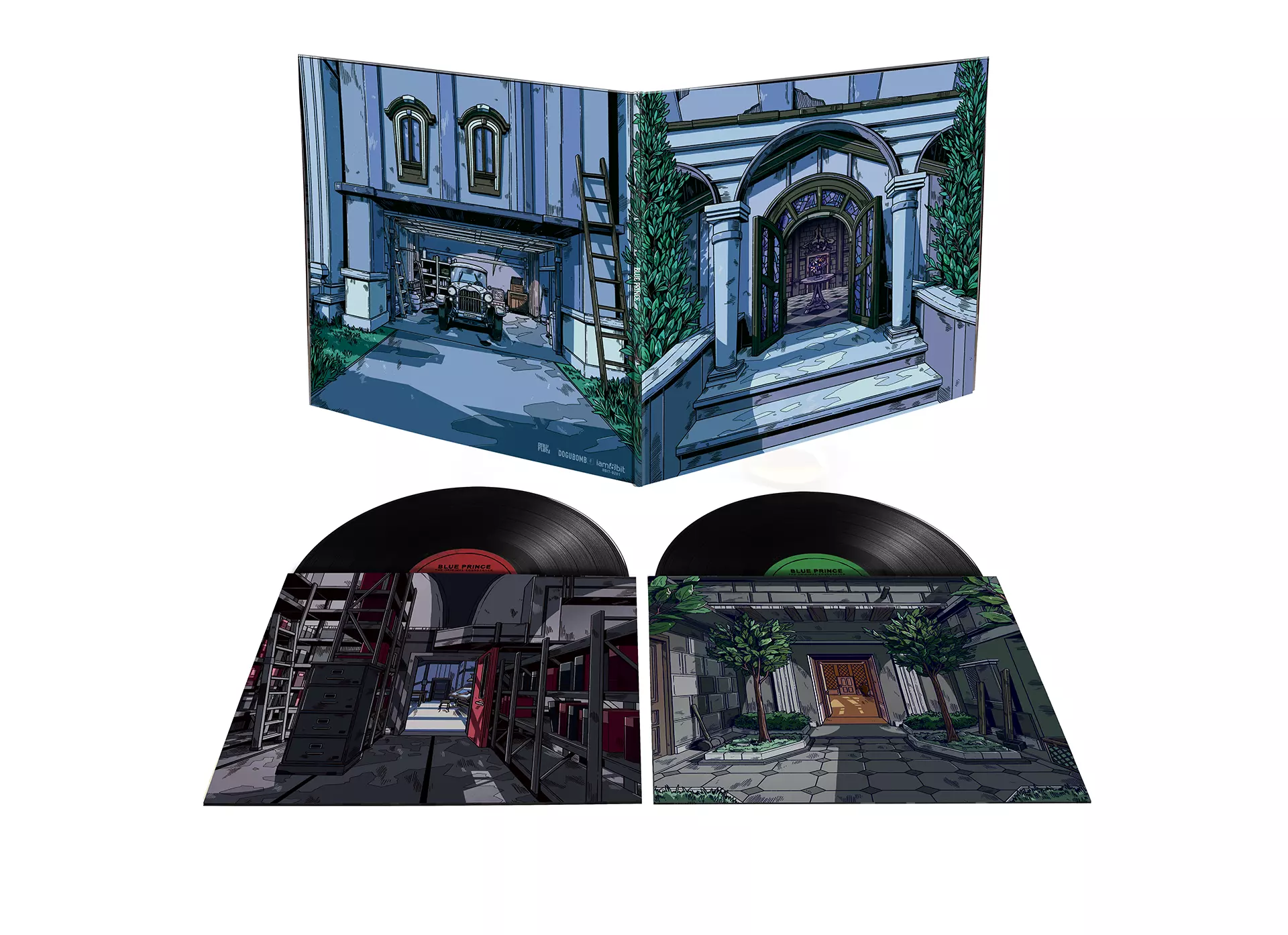 此合集包含: 蓝王子原声带:2XLP黑胶唱片/双碟装 digipak CD 2XLP黑胶唱片版本收录了蓝王子原声带中的精选曲目,采用经典黑胶压制。专辑封面由Stefan Große Hallbuer设计,折叠式包装展示了霍利山庄园、门厅及远处的门廊,突出了游戏中一些最具标志性的房间。