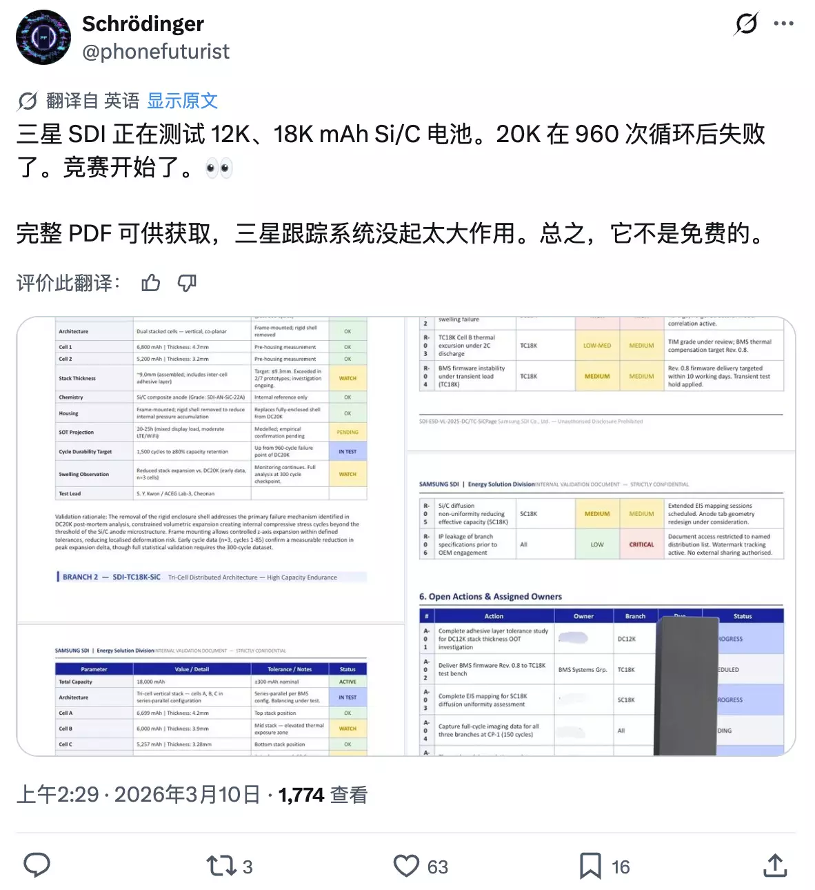 视频显示, 这台iPhone 11 Pro在经过1787次充电循环后,电池健康度已降至67%,电池容量仅剩2060mAh ,本可简单更换常规电池,但The Fix决定尝试升级大容量电池。 令人意外的是,整个拆解升级过程十分简便,且新款12000mAh电池的物理尺寸与原装电池完全一致,不存在空间兼容性问题,推测这款新电池大概率为硅碳电池。 尽管苹果并不鼓励使用非官方或未经授权的第三方电池,但考虑到许多中国手机厂商已采用相关技术多年,此次升级的大容量电池相对安全。 不过实际装机后,电池标称容量显示为10000mAh而非12000mAh,即便如此,相较于原装电池仍有330%的容量提升,效果十分显著。 此次升级也引发猜测,苹果并非无法给iPhone配备更大容量电池,而是有意选择小容量电池。 业内人士分析,苹果每年出货数百万部智能手机,供应链难以承受批量产品出现电池缺陷的风险, 相比因电池容量小遭受批评,苹果更倾向于优先保障设备安全,避免出现手机起火等安全事故。