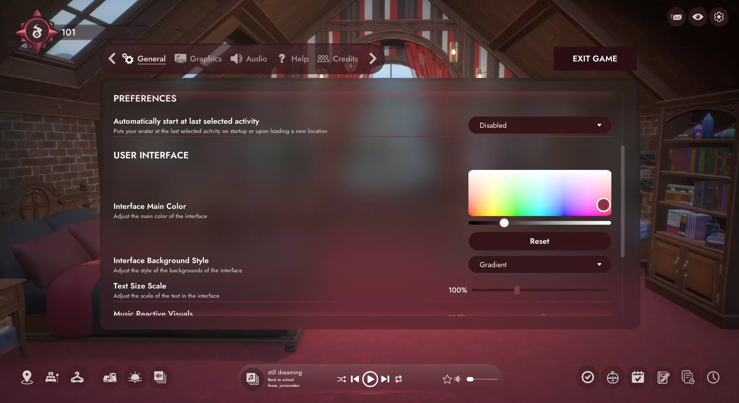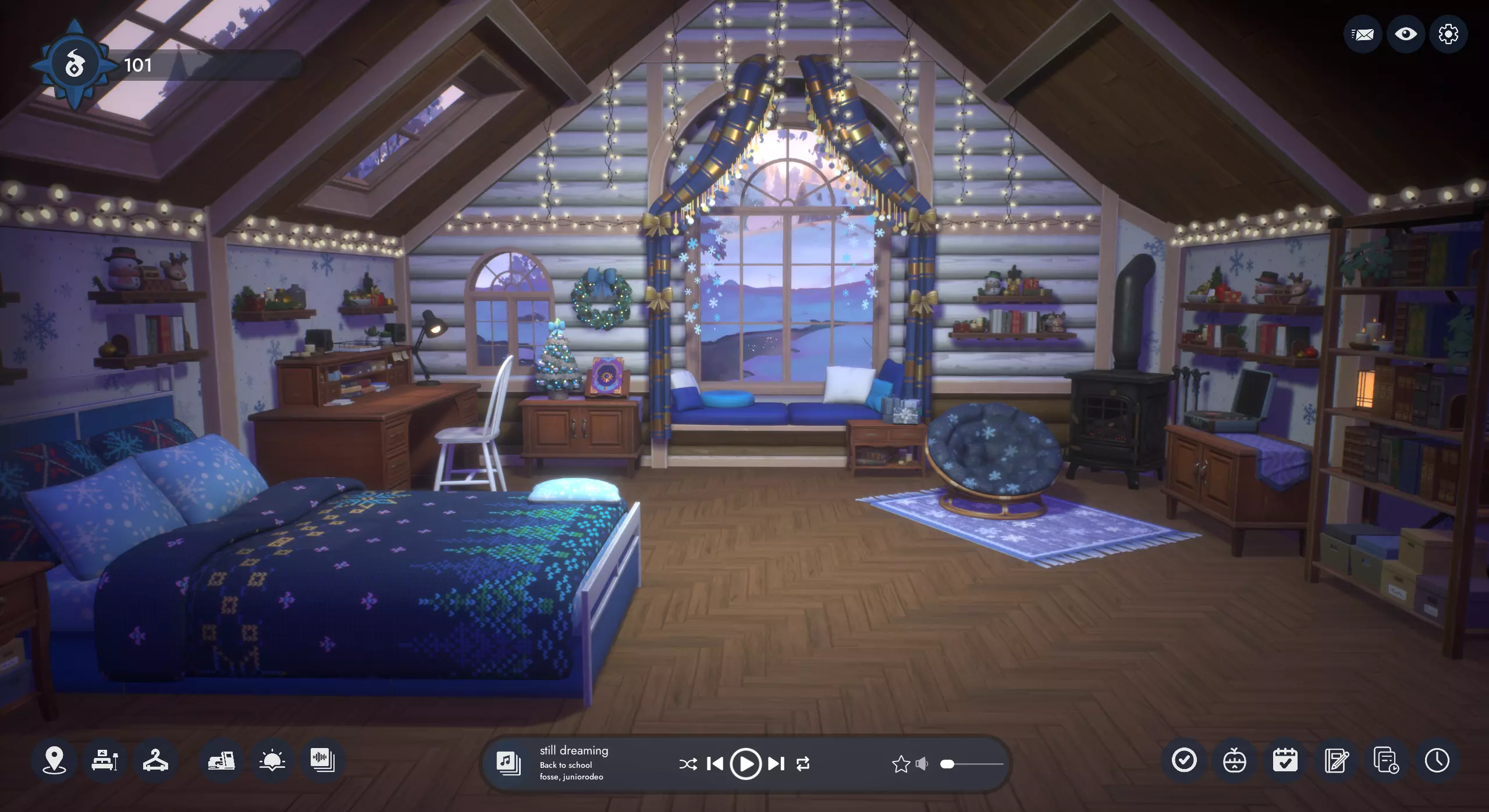 新增Lofi Girl节日音乐 我们添加了一个来自Lofi Girl的全新节日主题播放列表!将其与舒适的壁炉音景搭配,营造完美的冬日氛围。 俄语本地化 俄语玩家现在可以用母语畅玩游戏了!请注意,反馈本地化错误的最佳途径是在我们的Discord服务器的错误报告板块。完整更新列表: 新功能 1. 重新设计的用户界面,包含新的界面设置 2. 界面颜色自定义 3. 界面风格选择(渐变/扁平) 4. 悬停提示和可读文本(如灵物图鉴中的文本)的文字大小缩放 5. 将界面按钮移至底部,以便后续更轻松地进行控制器导航,并将灵物图鉴按钮移至灵物图谱等级进度条内 【注意:控制器支持的编程工作已启动,但在本次更新中尚未完全功能化,敬请期待】 6. 音乐播放器新增音乐频谱视觉效果(可在设置中调整) 7. 游戏现已支持俄语 新内容 1. 一个新的灵物可供发现,并有其专属Steam成就 2. 壁炉处新增“与灵物玩耍”活动 3. 颜色自定义以下冬季物品已新增内容:小木屋墙壁和天花板、雪花壁纸与地板、姜饼墙壁、雪花和节日挂灯、雪花窗帘、可自定义壁炉选项。火车和厨房DLC区域已添加节日物品。 卧室新增8款背景。我们为拥有基础游戏的玩家添加了火车风景的静态版本作为背景选项。新头像物品 3款新鞋子 4款新上衣 6款新套装(连衣裙) 8种耳朵样式 6种新头部形状 新增Lofi Girl节日播放列表 生活质量优化 【新增游戏自动从上次选择的活动开始的选项】(默认禁用,可在常规设置中启用) 【现在可以为计时器使用不同的音效集】 【当计时器启用“继续前提示”选项时,铃声将循环播放,直到用户再次按下计时器继续】。我们希望这能让玩家更容易不再错过铃声。 【将大多数删除操作(在生产力工具中)设为“长按”操作,以防止误触】。【BUG修复】 1. 修复了切换头像预设时,若新预设未设置自定义物品颜色,颜色有时会被转移的问题。 2. 修复了Inkster的书在冬季皮肤(DLC)中不显示的问题。 3. 自定义音乐的“刷新文件夹”功能现在能正确刷新游戏内歌曲。 4. 习惯视图现在仅高亮显示当前周的星期几。 5. 修复了 dreads 发型搭配连帽衫和帽子时的穿模问题。 6. 修复了同时激活过多音景导致歌曲跳播的问题。 感谢您的支持!