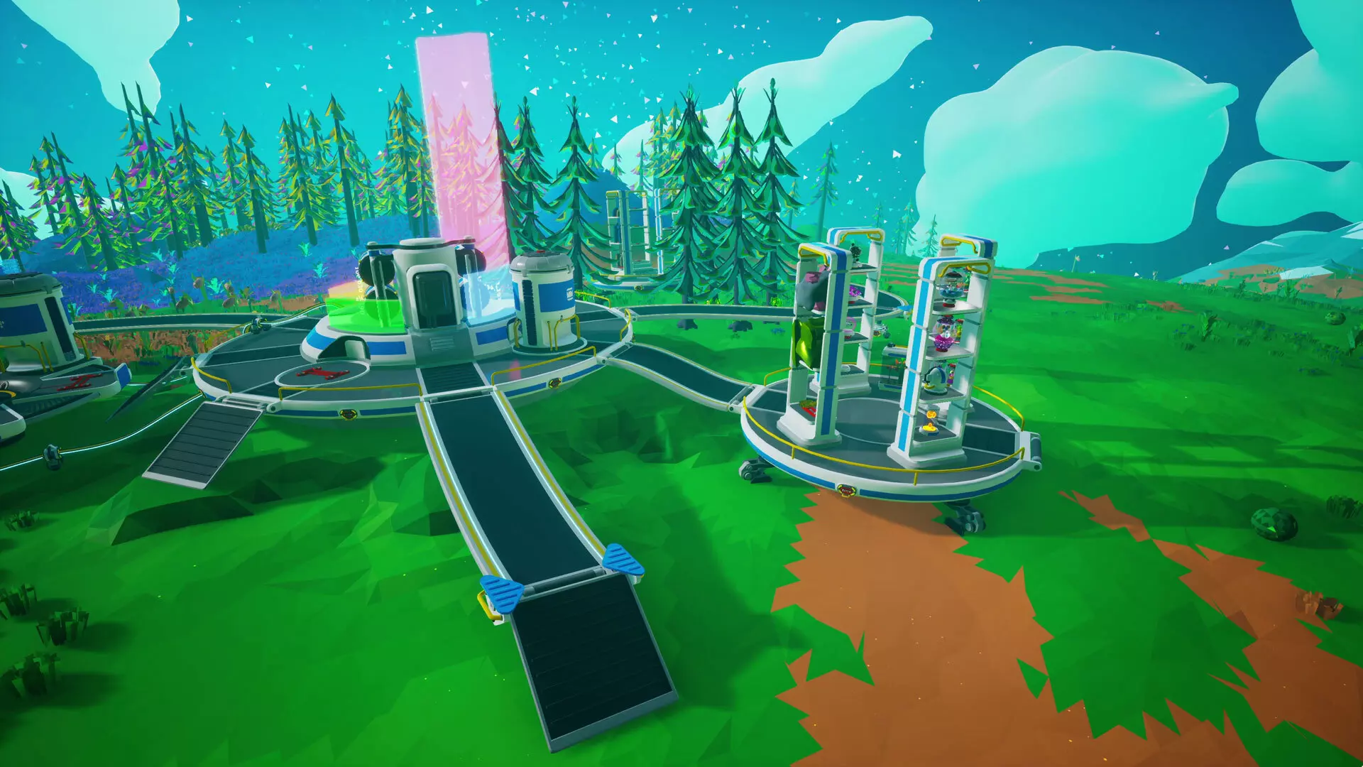 新步道 将地形弯曲成陆桥是探索时出行的一种有趣且有效的临时解决方案,但在建造基地时,你可能需要更整洁、更美观的选择。【新步道】将帮助实现这一点,它们还具有传输电力和氧气的额外功能。 它们像轨道柱一样成组制作,放置方式也基本相同,具有同样的多功能性,能在范围内最近的柱子之间创建可行走的路径。它们也是连接新博物馆与其展示柜扩展部分的好方法,这就是为什么博物馆本身内置了步道,同时也提供了单独的步道柱连接点,以便你进一步延伸路径。