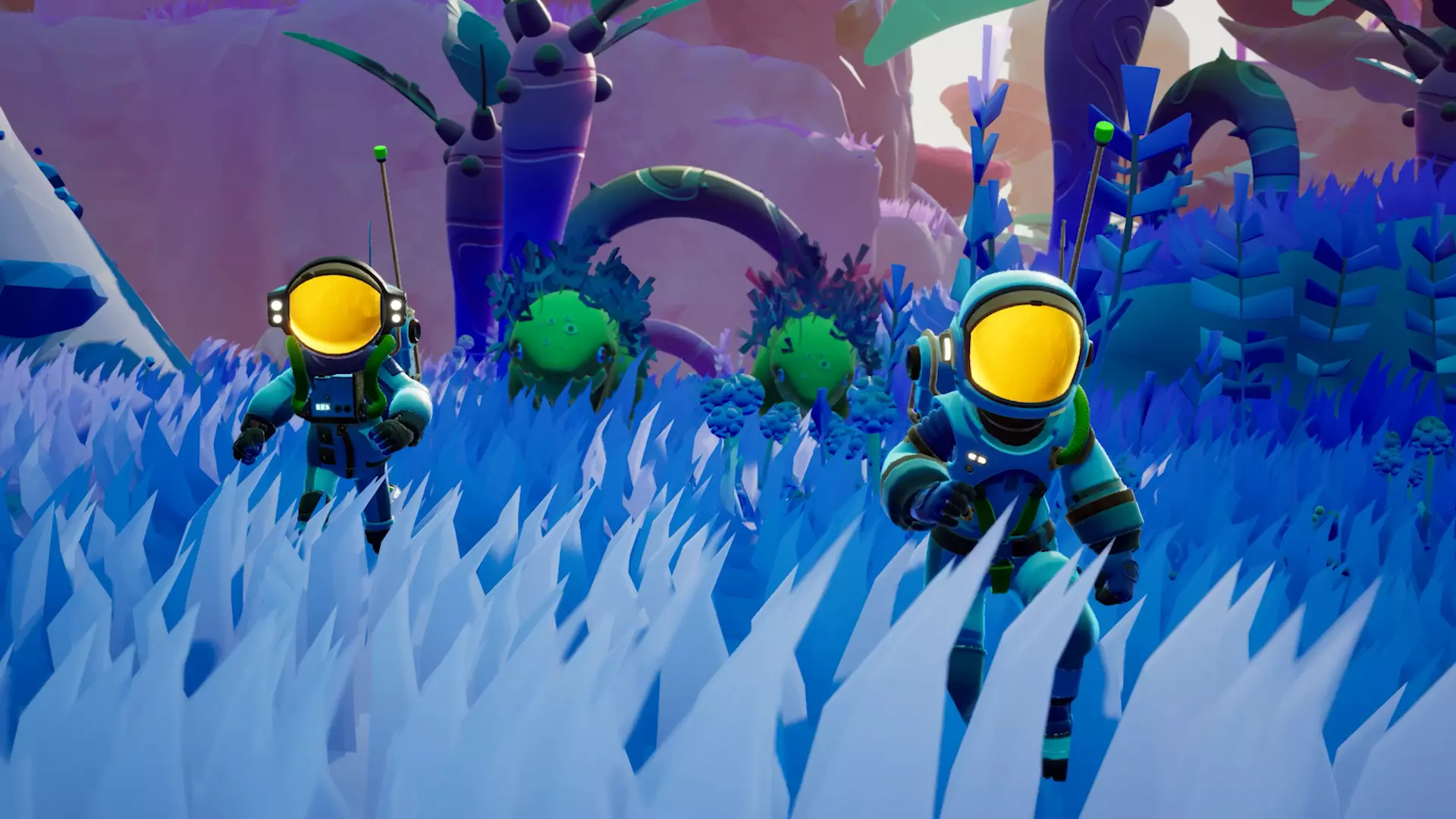 外星世界与生物 你的探险之旅将充满迷人的生物、危险的植物群以及更多未知事物。寻星者号的首个目的地是特弗拉星球,这是一个五彩斑斓、充满生命的世界。这是一颗精心打造的星球,而非我们以往采用的程序化生成方式,随着更多着陆区域的解锁,你将发现不同的生物群系和隐藏的秘密。 目前的规划是,一旦寻星者号的船员完成了在一个星球上的所有科学目标,他们就会前往下一个星球。不过我们先不急于讨论后续内容,关于特弗拉星球还有很多值得介绍的地方。除了那些足以让任何外星植物学家梦寐以求的野生植被外,你还会遇到各种各样的外星生物(其中一些至少部分也是植物)。 有些外星 fauna(生物群)可能相当危险,需要团队合作才能抵御。你会遇到一些笨重的 brute( brute ),它们会对任何离它们太近的东西怒目而视。其他生物可能同样具有领地意识,它们会选择从远处向你喷射减速粘液。 但并非所有你遇到的生物都是敌对的,它们对你的出现可能会有不同的反应。有些生物可能会完全无视你,比如好奇的 Carrotlings( Carrotlings )。它们是一群神秘的生物,但大多数情况下是无害的。大多数情况下。