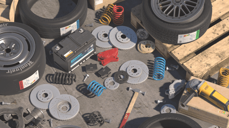 本开发日志中所有图片和GIF展示的大部分内容仍在开发中,不代表最终版本。部分徽标和品牌视觉元素可能为占位符或涉及版权问题,将在最终版本中替换! 第五篇开发日志主题:零件与升级 我们一直专注于可自定义和可升级的汽车零件。目前,这些零件的功能和外观已基本确定。每个物品现在都有稀有度等级,并且我们引入了服务质量评分。这使你可以轻松比较低稀有度但高耐用性的零件与可能耐用性较低的高稀有度零件。