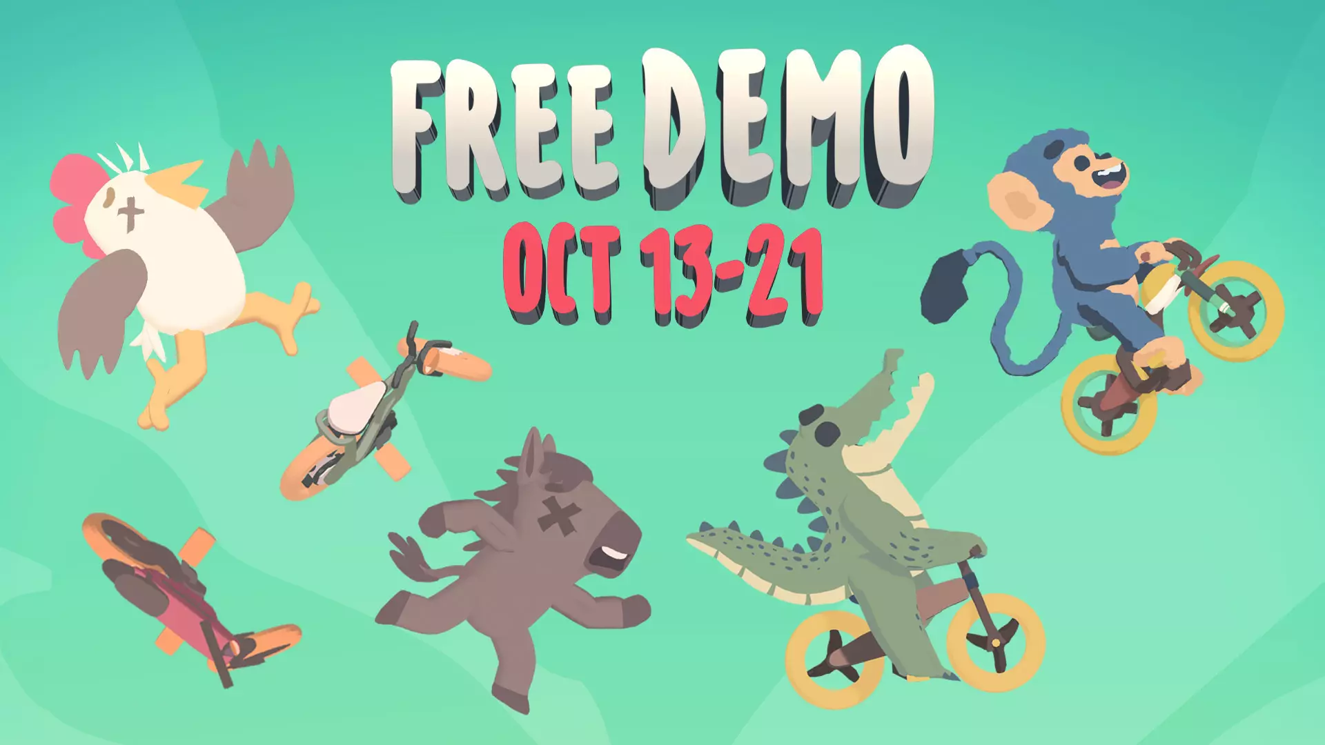 我们的全新派对游戏《终极绵羊浣熊》现已推出免费试玩版,该试玩版将在Steam新品节期间开放至10月21日!我们整周都会和社区玩家一同游玩,欢迎体验试玩版。 温馨提示:即使你已经尝试过试玩版,也非常欢迎再次体验!我们已进行了大量改进,你的再次游玩也能帮助其他玩家发现这款游戏。 新品节试玩版包含哪些内容? 1. 3条充满野性的赛道,包括全新的“牧场”和“水坝”,以及经过更新的“农场”赛道。 2. 支持8名玩家进行在线或本地游玩(仅限Steam平台)。 3. 来自《超级鸡马》角色阵容的原创动物角色,还有鳄鱼! 4. 首次加载试玩版时会出现新手指引教程,帮助你掌握基础玩法。你也可以通过打开菜单并进入主菜单来跳过。 新增训练场地,用于练习骑行技巧。可从主菜单界面进入。 提供多种控制方案,包括键盘、带扳机键的手柄或带摇杆的手柄。可在主菜单选项或角色选择界面进行设置。 优化地形方块,现在可以将它们紧密放置,减少赛道中尴尬的间隙。 改进轨道方块,使自行车能更轻松地吸附并沿轨道滑行。只需在靠近轨道时按住跳跃键即可。 更新计分板,显示你的最终排名。 包含近一年来通过演示和测试所做的各种改进。万圣节关卡创作活动 我们需要你为《超级鸡马》设计的十月恐怖主题自定义关卡! 请在10月22日前提交你在《超级鸡马》中制作的自定义关卡!我们将挑选最多15个社区制作的关卡,在游戏中展示供所有人游玩。