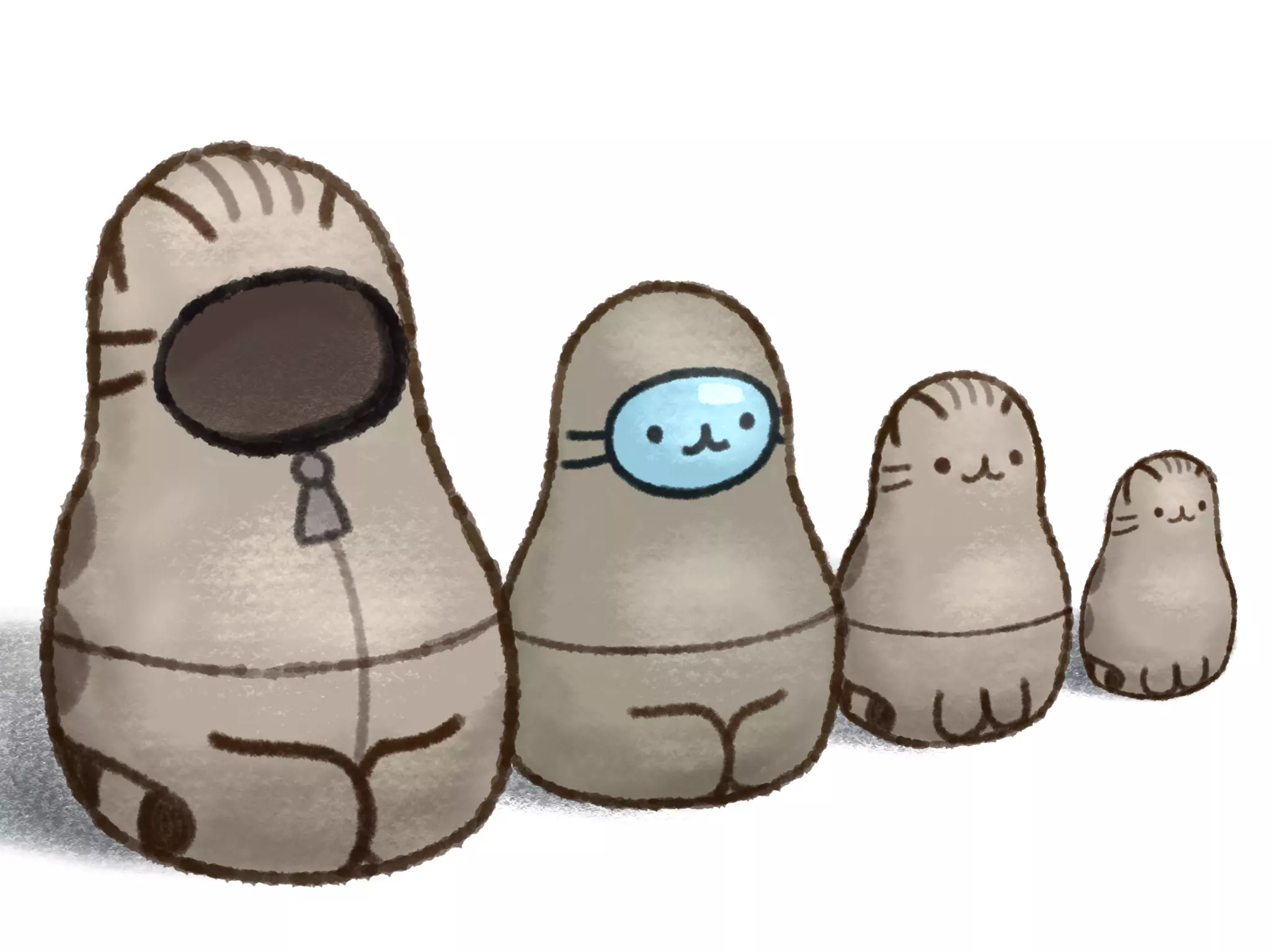 接下来这幅由Fishy创作的作品是为了庆祝我们与Pusheen的合作!当我在服务器的艺术频道看到它时,立刻就笑了。我很想在我的桌子上放一些这样的东西,即使我自己养的太空猫可能会把它们弄倒。