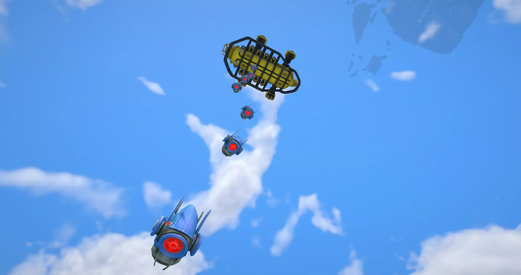 我们计划对系统进行多项升级,例如增加采矿无人机数量或提高采矿无人机速度。不过,由于我们计划尽快发布2.2版本更新,这些升级可能会拆分到单独的更新中。 另外,我们也注意到有关泥土、石头和其他地形方块没有用途且只会占用背包空间的反馈。首先,我们将大幅增加这些方块的堆叠数量,同时也在研究它们的利用方式。 建筑船挖掘 现在来看看此功能的自动化版本!大多数人建议添加一个能够发射采矿无人机的建筑,类似于个人采矿无人机。你可以将它放置在采矿区域旁边,该建筑及其无人机就会自动挖掘区域,而你可以去做其他事情。但这给我们带来了一些不便,最终感觉不太合适。例如,有限的范围可能需要频繁移动建筑,偏远地区可能没有电力供应,或者放置后不久就拆除建筑的操作体验不佳。 所以我在想,为什么不采用一种无论何种情况都能正常运作的方式呢?这就需要用到我们现有的工程船了。它们已经能够移动到模块化建筑并进行建造,那么为什么不给它们配备一些集成采矿无人机,让它们前往你的采矿区域为你进行挖掘呢?它们没有范围限制,因此无论你将采矿区域放置在哪里,它们都能够到达。