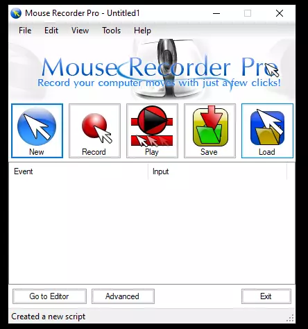 好了!现在只需接受条款,点击所有看到的“下一步”并完成应用程序的安装! ● 打开鼠标记录器后,选择“加载”选项,找到随下载一同提供的脚本。