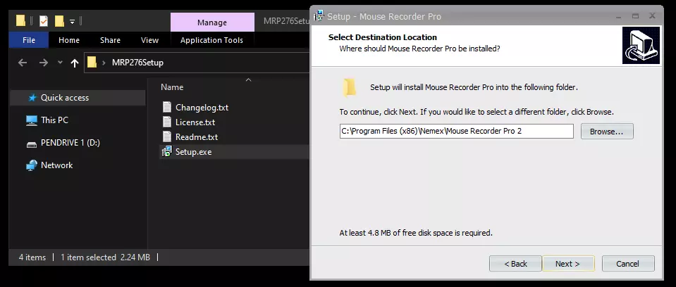 现在你已下载rar文件,请将其解压到桌面,然后开始安装鼠标记录器,方法是打开文件夹并双击Setup.exe。