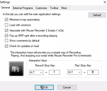 ● 将“Times to play script”从1改为0,使其变为自动模式,只能手动停止。 ● “Script playing speed”选项可提高或降低脚本的执行速度。强烈建议保持为正常速度,毕竟脚本本身就是按此设计的。但如果脚本未完全正常工作,你可以尝试略微调整,或许会有帮助。 ● 进入鼠标录制器的“Settings”选项,你可以设置用于启动和停止应用程序的按键。此外还有其他你可能需要的设置,例如最小化到系统托盘的选项。