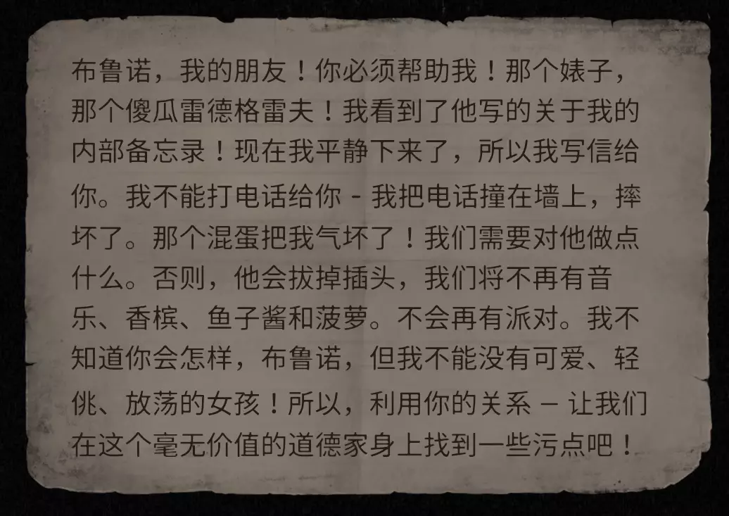 任务:贿赂Panem et Cireceses 该任务要求你调查谁接受了民众的贿赂款。与老板对话后,他会安排一名警卫在早上等候你。你需要在开始工作前与警卫交谈,之后警卫会安排你排队。排队过程中,你需要不断插队(建议先存档): 1. 第一个人直接拉到旁边; 2. 第二个人记得给钱; 3. 还有一个人会说废话; 4. 对话时对女性不要使用侮辱性字眼; 5. 最后一位要选择领袖。 任务完成后,向老板回报并给他一千块。 其他任务: - 宴会找食物:向小吃店阿姨购买食物,简易酒可去外面购买,若与董关系好,他会给你一瓶。 - 找小姐:可以向罗要名片,也可以回家后外出寻找。