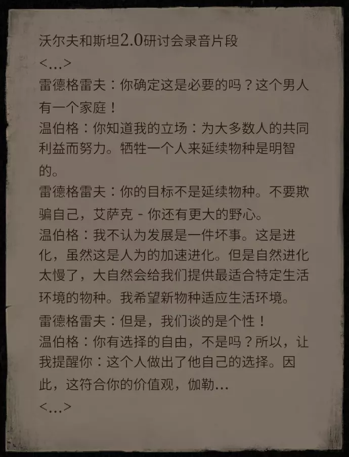 25楼的老板相关任务:完成老板交给你的所有任务,他就会带你进入他的秘密实验室。他会要你认同他的神论,认同或不认同各对应一个成就。注意,搜括到的书籍千万不能先跟老板讨论,否则他会把你抓去关起来,必须进入实验室后才可以。另外,也不可以跟老板讨论时空旅行的人,否则你会被杀死。 集体免疫成就:帮五个卡尔克隆人打疫苗,办公室外面那五个即可。 卡尔哭泣的成就:跟模拟对话完就可以拿到。 顺便提一下,老板会要你打电话接受测验,除了【刀子的背面要选一端】和【活到几岁要选85】外,其他选项都选【领袖决定一切】。 37楼结局相关成就。