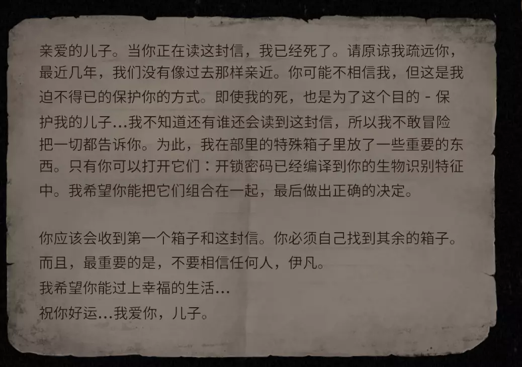 信件与编码 网上有相关资料!建议仔细搜索每一处内容,有些地方最好重新搜索一遍,不要放过任何细节,尽量全面搜刮。为了确保获取所有物品,建议完成每个角色的任务,并且尽量做到最好,以免遗漏。个人觉得容易遗漏的地方大概是12楼老板的地下密室、一楼秘书小姐的抽屉和电脑屏幕,其他地方建议经常彻底搜索,警卫室门口架子上也可以多留意,获取物品的概率较高。