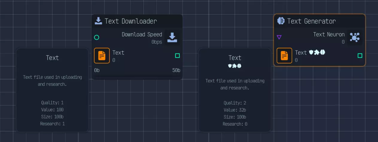 游戏中期 在游戏中期,我们使用AI训练师和神经元生成文件。这些文件的价值要高得多。一个普通文本文件价值100,而AI生成的文本文件价值320亿(32b)。