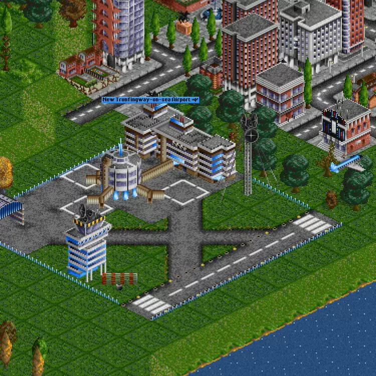 飞机 SimpleAI脚本通常会在拥有相当完善的公路车辆和火车网络后开始使用飞机。如果能充分发挥飞机的能力,它们可以带来巨额利润,但初始设置成本最高。 所有飞机在尝试降落到机场时都有0.07%的坠毁几率。如果尝试让大型飞机降落在小型机场,该几率会增加到5%,不过SimpleAI脚本不会犯这种错误。此外,如果飞机正在空中飞行时所有机场被移除,飞机会因燃油耗尽而坠毁。要对AI玩家做到这一点难度极大,但如果货物是通过火车和公路车辆运入机场,而你设法切断了这条补给线,理论上是可行的——不过,我自己从未成功过。 树冠麻烦 我其实并不相信这真的有用,任何坠机都纯属巧合,但我通常会在竞争对手的机场周围种上大树,希望有飞机能撞上树冠。我确实见过这种情况,但我一直认为这只是那0.07%坠机概率的结果。