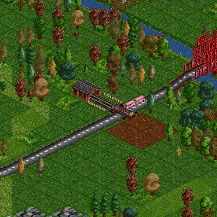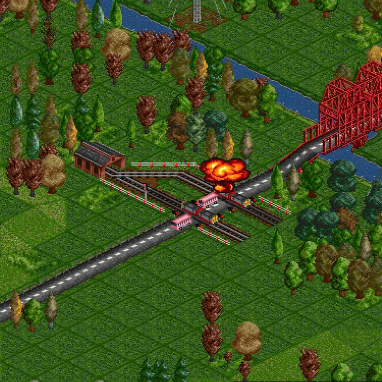 以前,玩家可以将最便宜的公路车辆——运畜货车开到竞争对手使用的道路上,然后命令它停在路中间。这样一来,对手的巴士和卡车就会被堵在运畜货车后面,造成严重的交通堵塞。不过,这个漏洞已经被修复了,现在公路车辆可以超越停止的车辆,因此我们需要更有创意的方法…… 交叉路口的把戏 公路车辆或许能够超越停放的货车,但它们无法超越平交道上停止的火车。