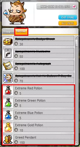 怪物公园MP中有一些实用物品,首先是商人出售的商品: 红色药水(30分钟内攻击力+30) 蓝色药水(30分钟内魔法攻击力+30) 绿色药水(30分钟内增加攻击速度,突破攻击速度上限) 黄色药水(30分钟内经验值+10%,可叠加) 贪婪吊坠(被动效果:20%掉率,可交易)