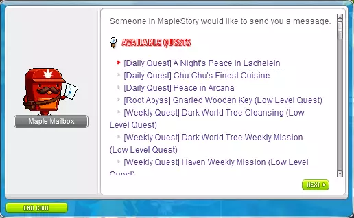 什么是拍卖行?拍卖行是以前被称为“自由市场”的功能,但操作更简便。拍卖行能让你轻松出售物品,也能让你轻松购买物品。这是寻找装备和其他所需物品的好方法。你还可以查看每件物品的售价,这样就能将自己的物品以相近的价格区间出售。 什么是每日任务/每周任务?每日任务是指游戏中每天可以完成的内容,例如:打BOSS、乌斯、怪物公园、枫之旅游等。 每周任务是指游戏中每周可以完成的内容,例如:暗黑树海与天堂、困难BOSS等。