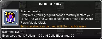 什么是G-pots?Deia's G-pots是一种公会技能,需要公会会长提升等级,成员才能领取。这些道具每周由公会发放,包含200瓶灵药(可恢复99,999点生命值和魔法值)和30个地图增益(全地图攻击与魔法攻击增益)。每周一刷新。你可以通过点击屏幕左中部的灰色灯泡图标,找到【Deira G-Potions】来领取。