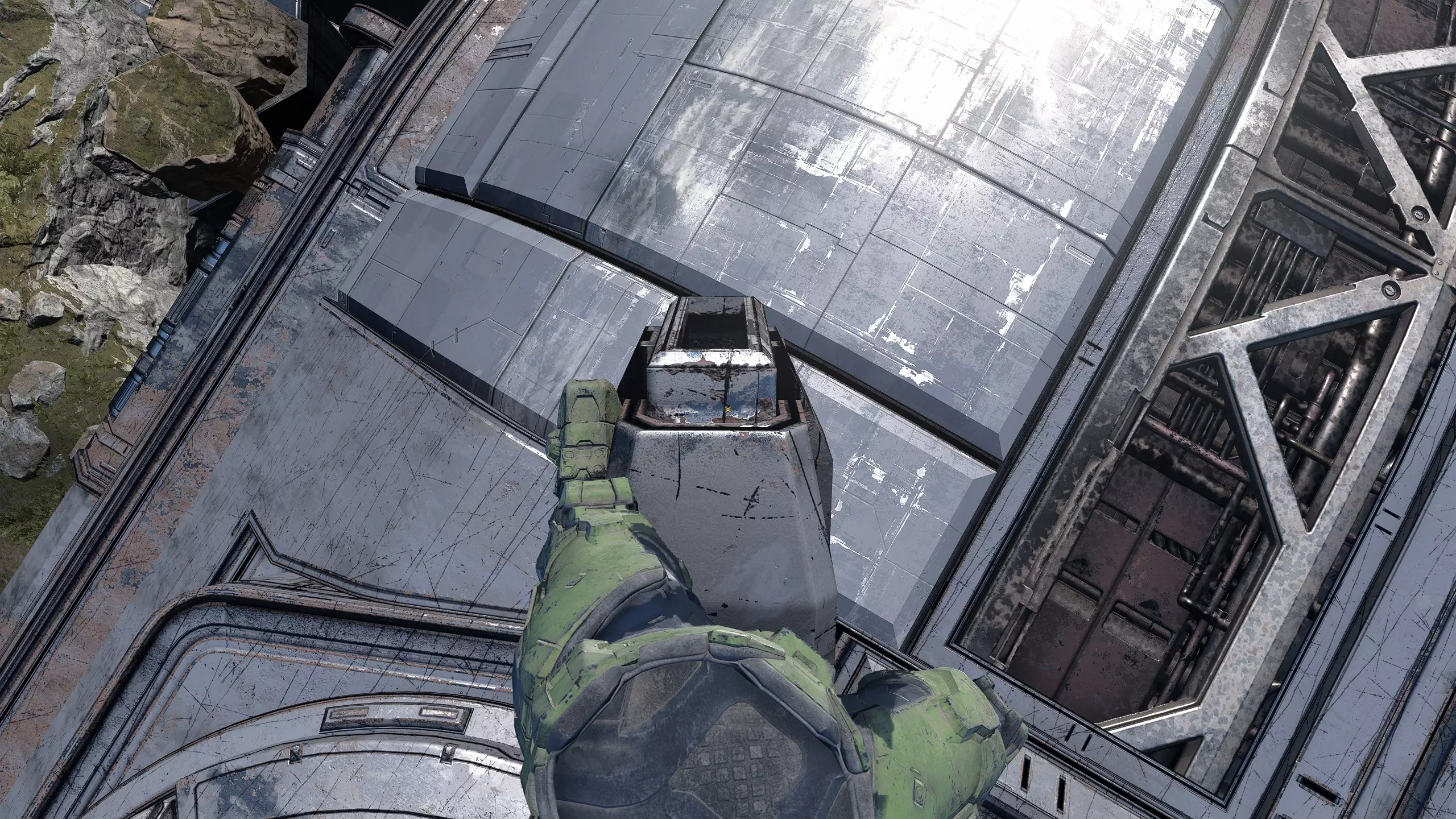 鼻出血 查看最佳视角。 LASO技巧与窍门 - 第一部分 在进行LASO之前,你需要在另一个游戏流程中收集所有骷髅头! 如果你有光环系列LASO的经验,会发现本作其实是其中较简单的一作。由于加入了坦克炮和无限弹药,本作是目前为止最容易完成的LASO。可以说,最难的部分其实就是前两个任务和偶尔出现的 Boss。记住,开始新游戏时,一定要将难度设置为传奇,并开启全部12个骷髅头。否则,通关后将无法解锁成就。建议你尽量忽略所有开放世界活动,专注于主线任务。接下来,让我们进入第一个任务。在任务开始时,你主要需要用抓钩抓住所有杂兵并近战击杀他们。在进入第一个门口前,建议你捡起【曼格勒】,这样就能对【狂怒 brute】进行爆头,有望快速将其击杀。之后按正常流程推进关卡,近战对付【豺狼】和【咕噜人】,并尽量爆头击杀所有【brute】。最终你会来到一个类似小型控制室的地方(如截图所示)。你要贴在门的左侧,向房间内的所有敌人投掷手榴弹或进行爆头。你的优先目标应该是那个持火箭筒的带盾【brute】。