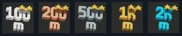 玩具列车/东方快车/西伯利亚铁路/深空运输 在无尽模式(任意难度)中建造一条500/1000/2000/4000米长的轨道。