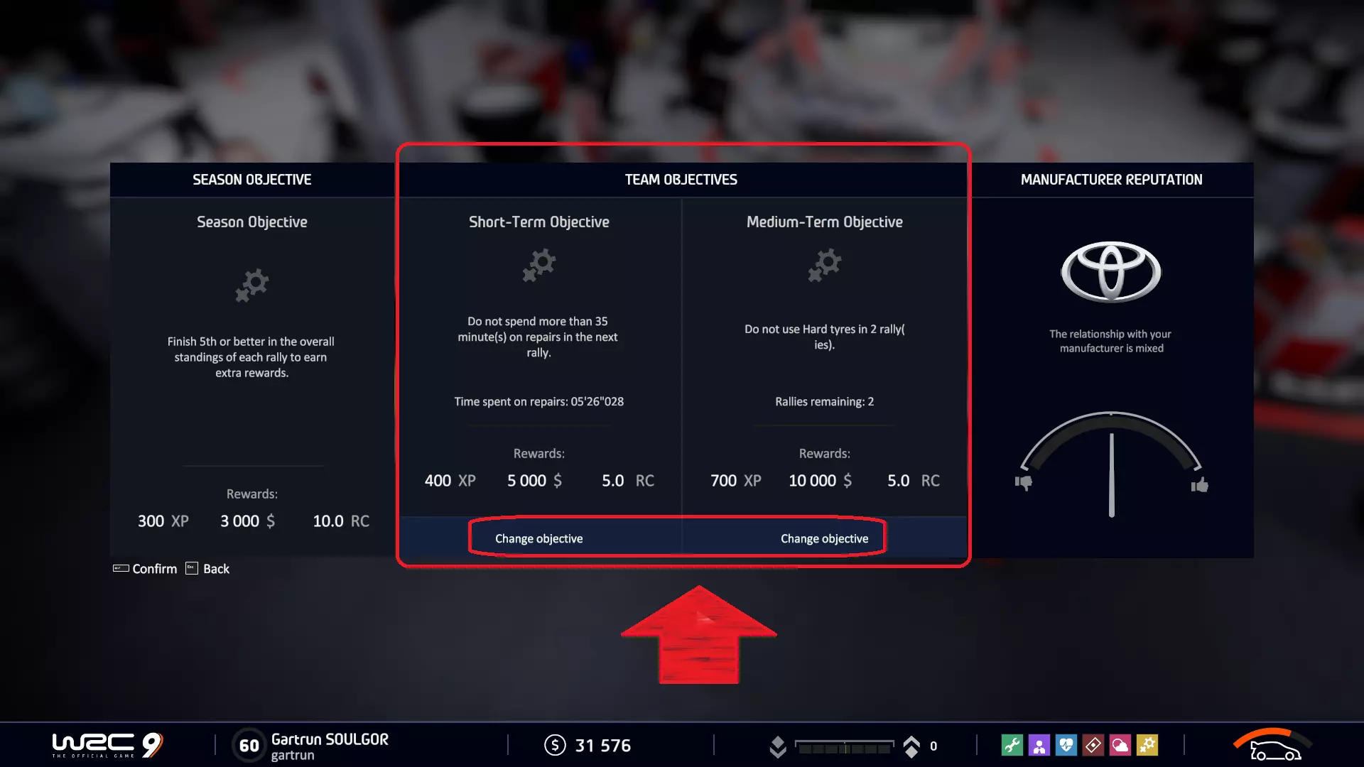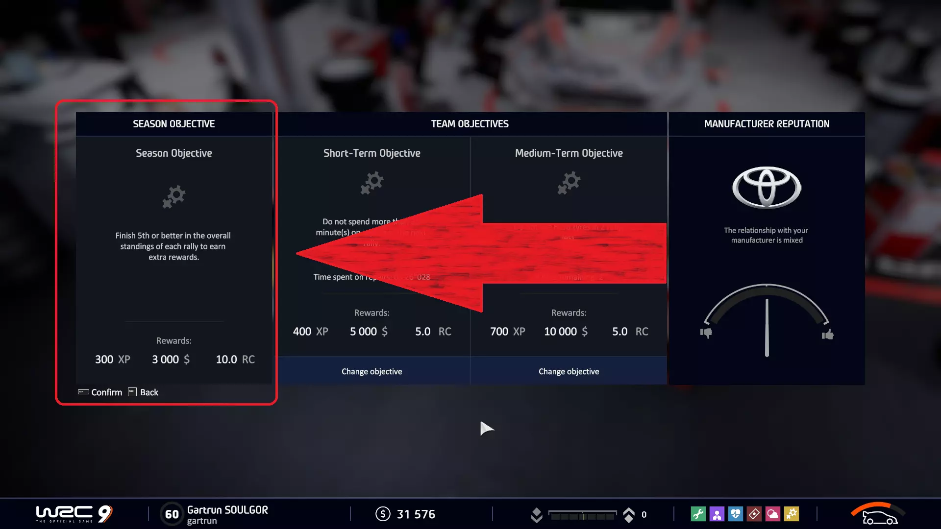 完成赛季目标 通常,赛季目标会出现在世界拉力锦标赛(WRC)的顶级联赛中。完成目标即可获得成就。