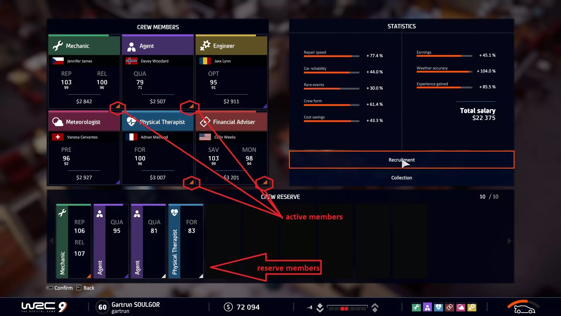 成为WRC世界冠军 通常,需要在WRC生涯中获得第一名。不必在所有赛段都获得第一,但总积分必须高于其他所有选手。 蒙特卡洛站冠军