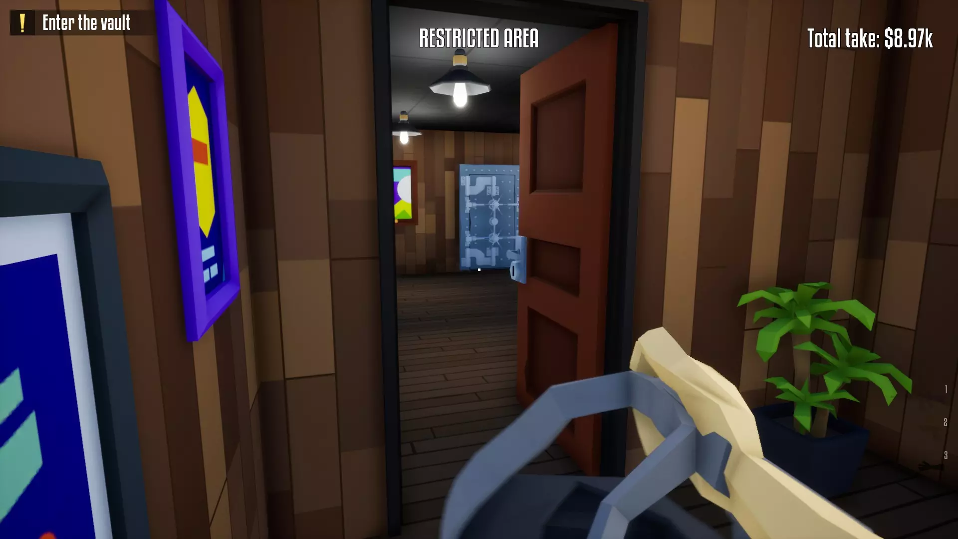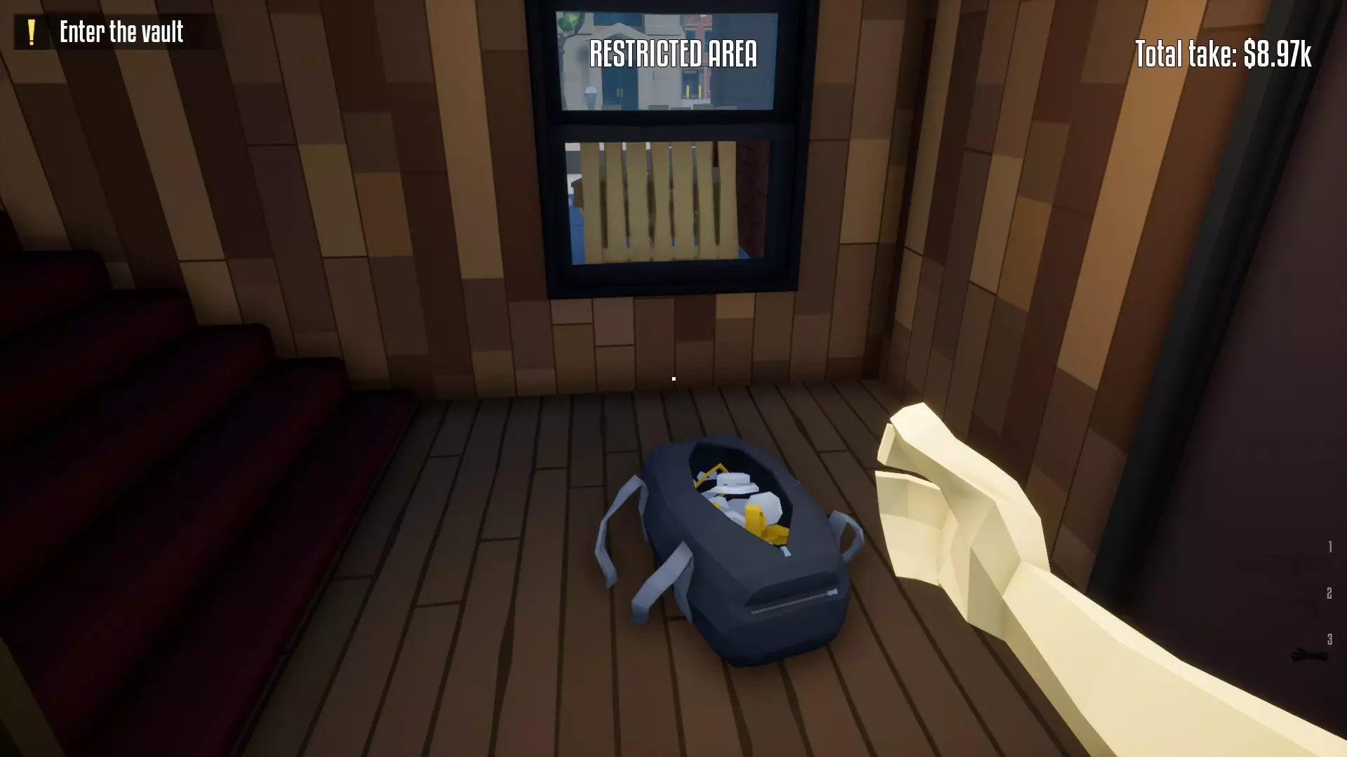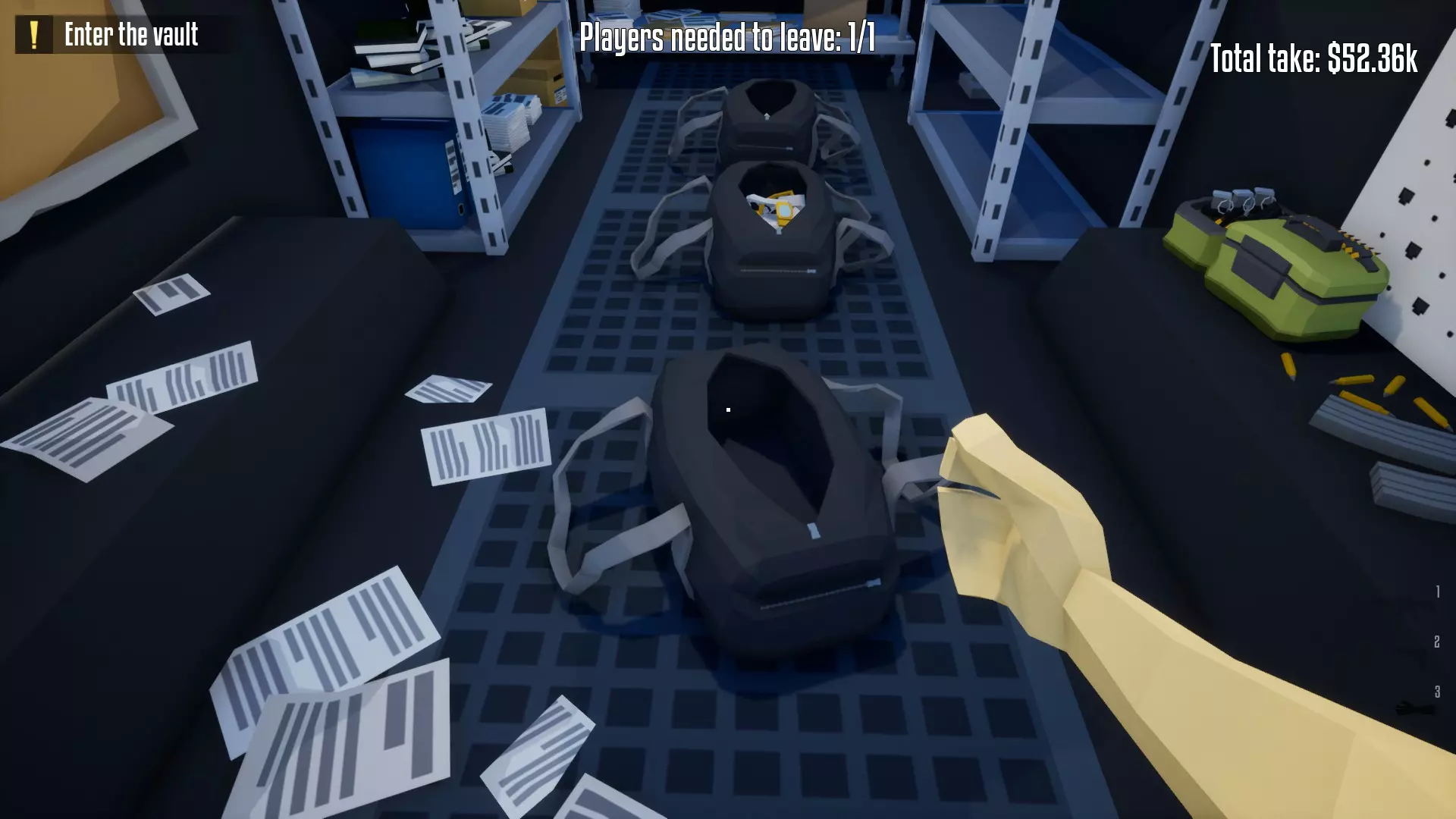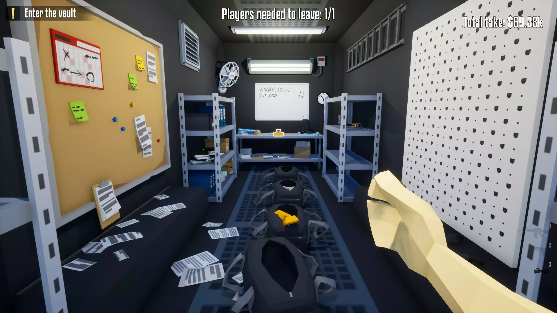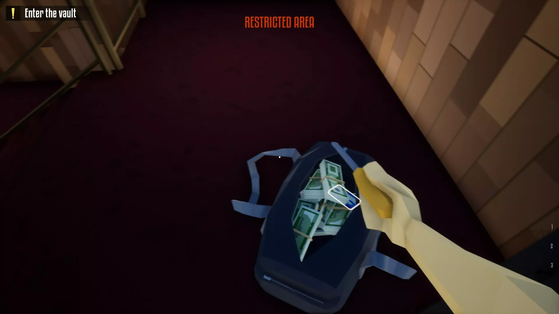 带上你的背包,去办公室搜刮钱财和保险库钥匙卡。