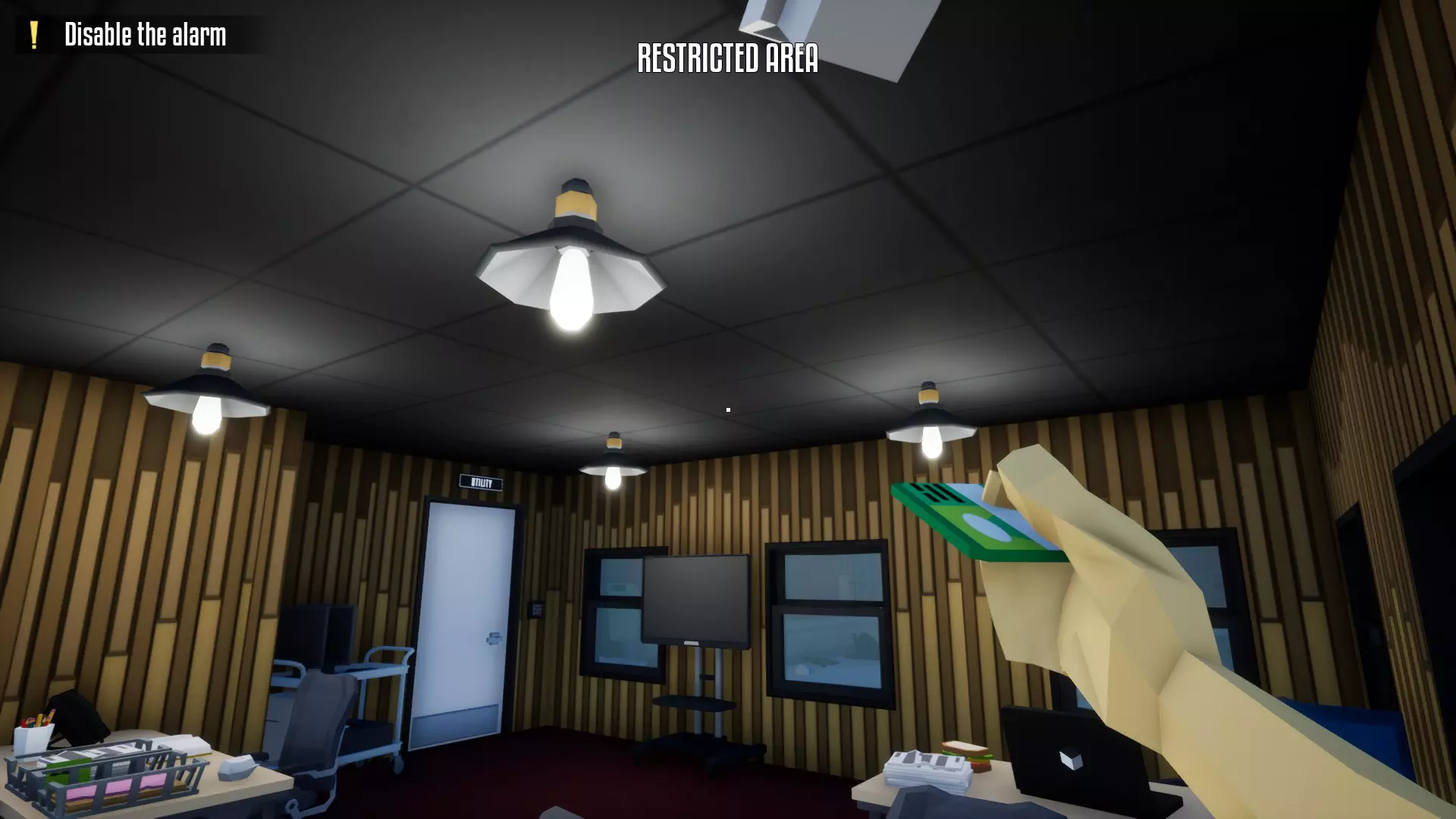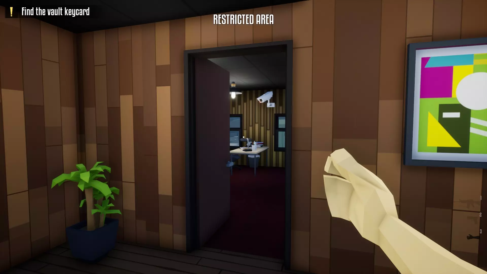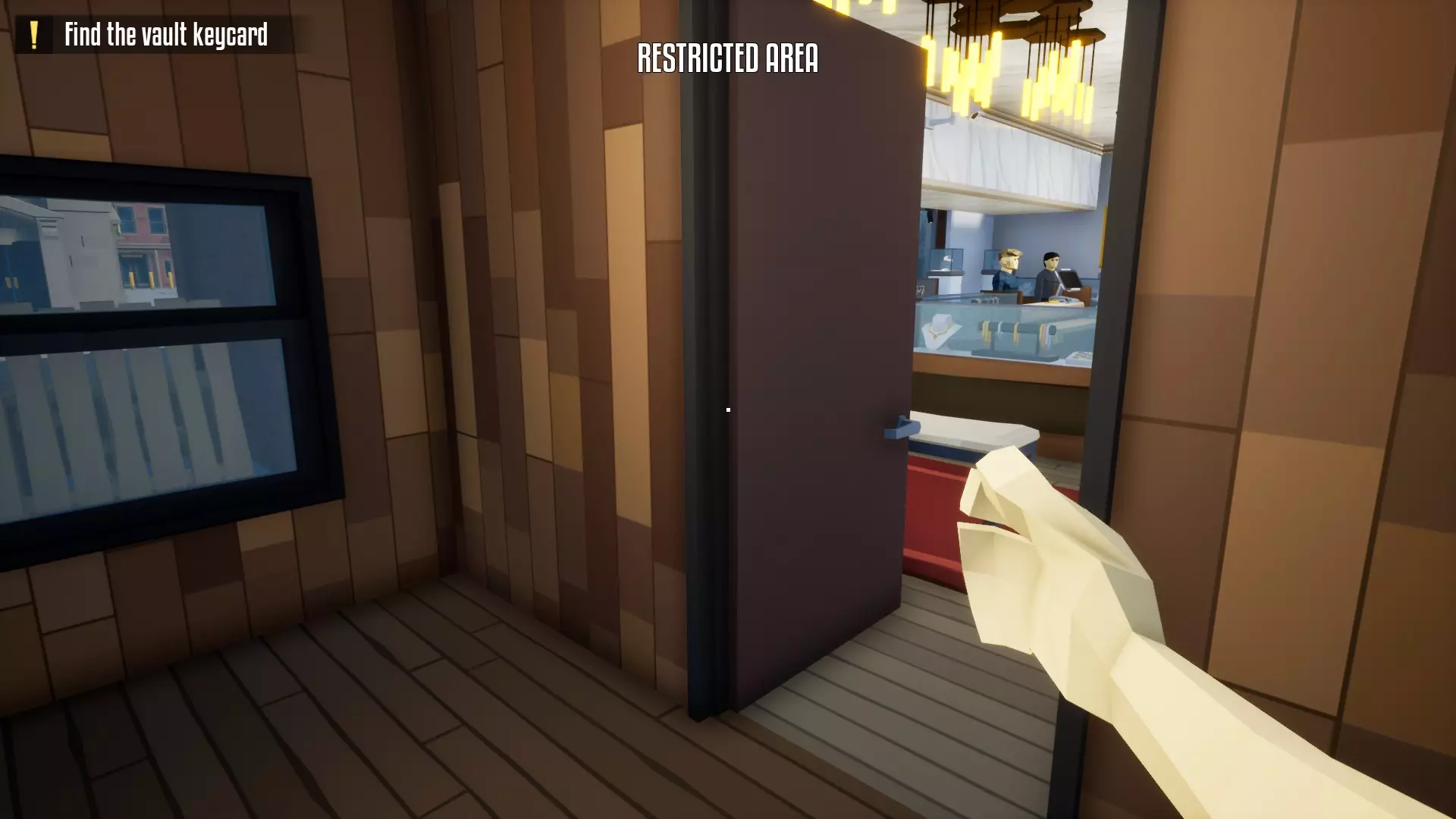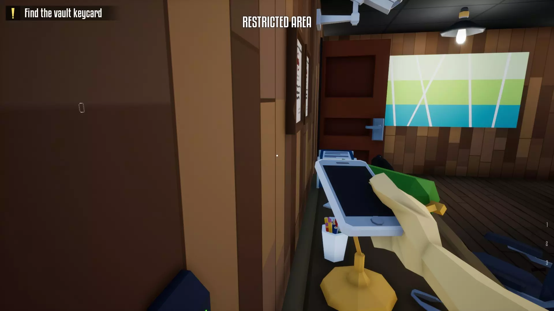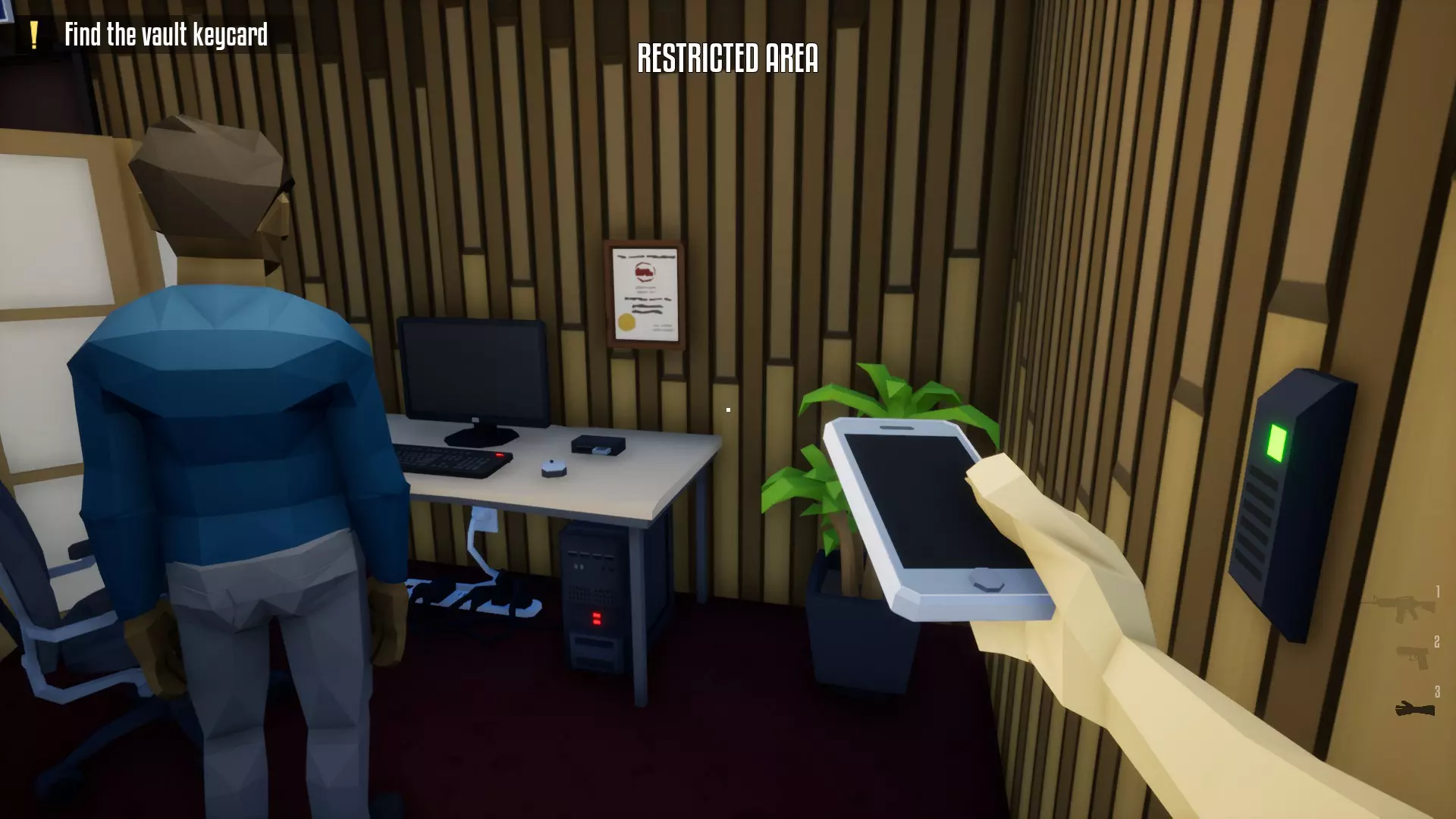 带上你的背包,去办公室搜刮钱财和保险库钥匙卡。