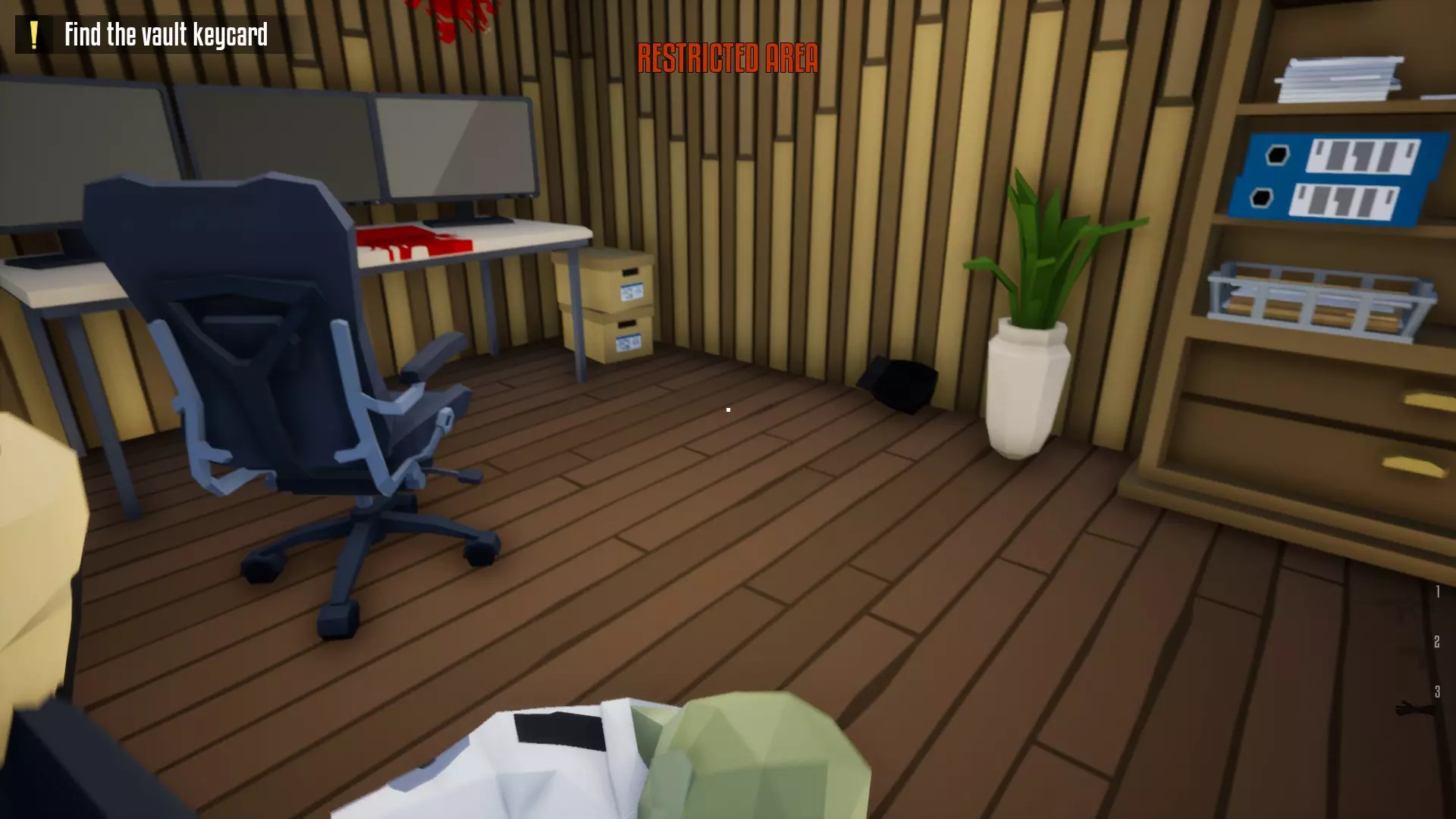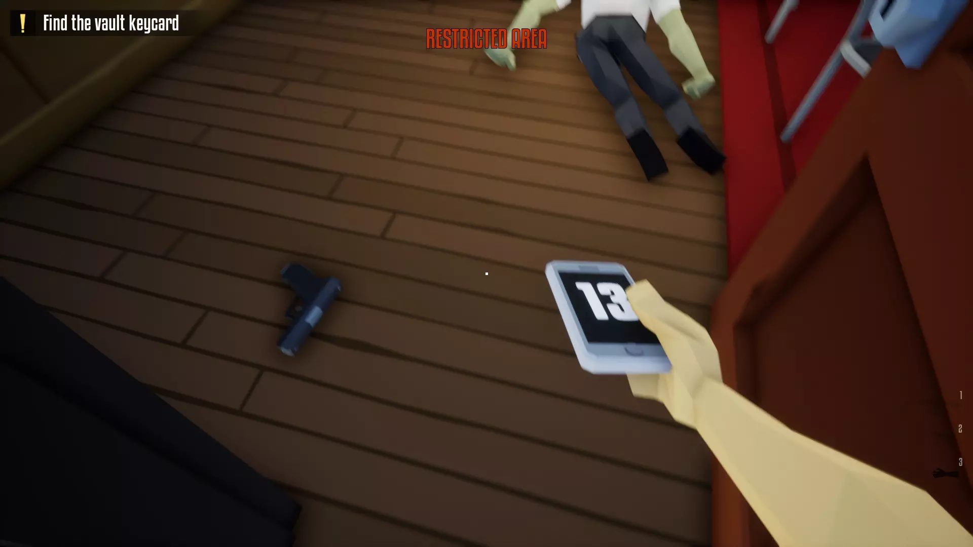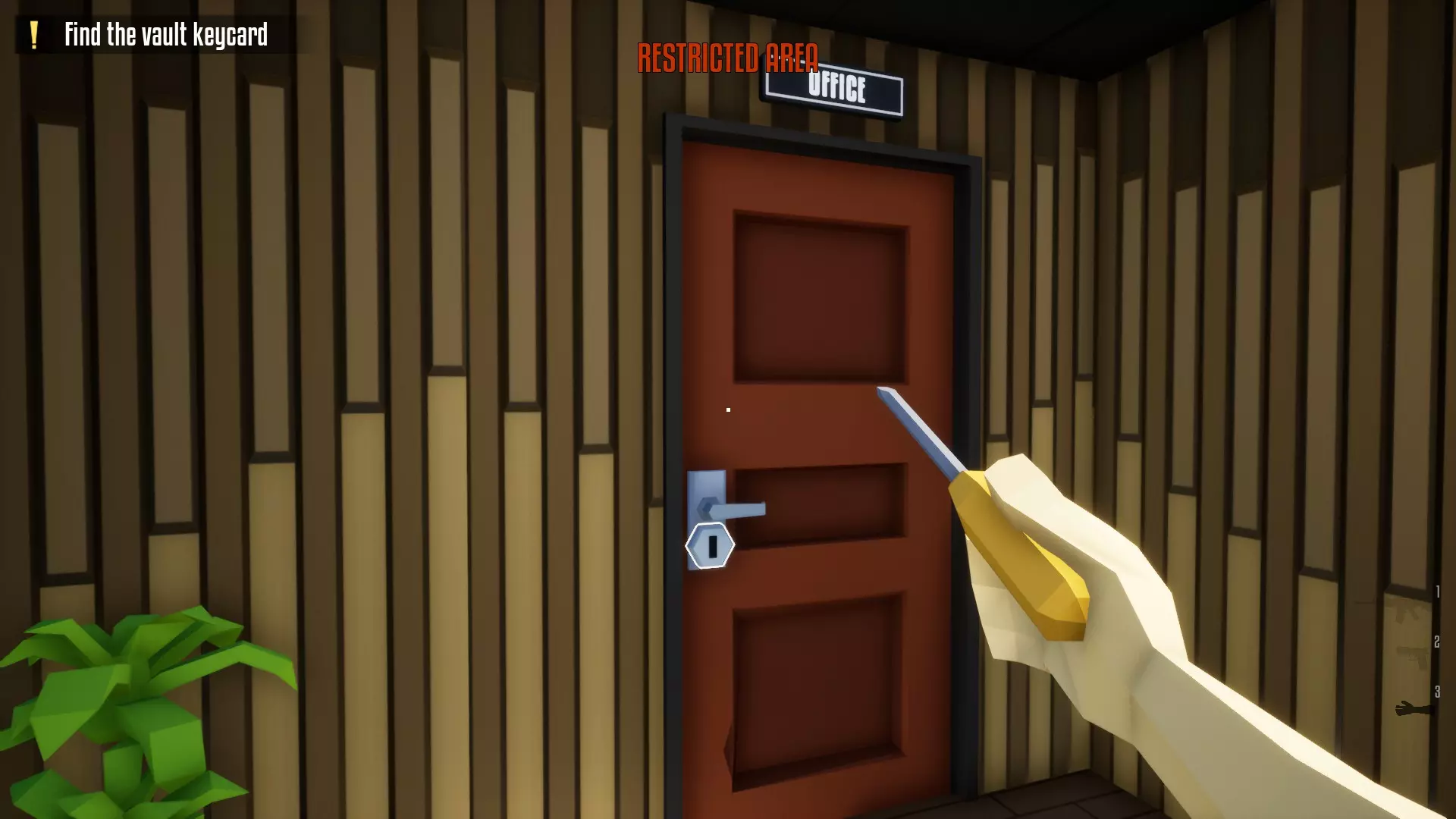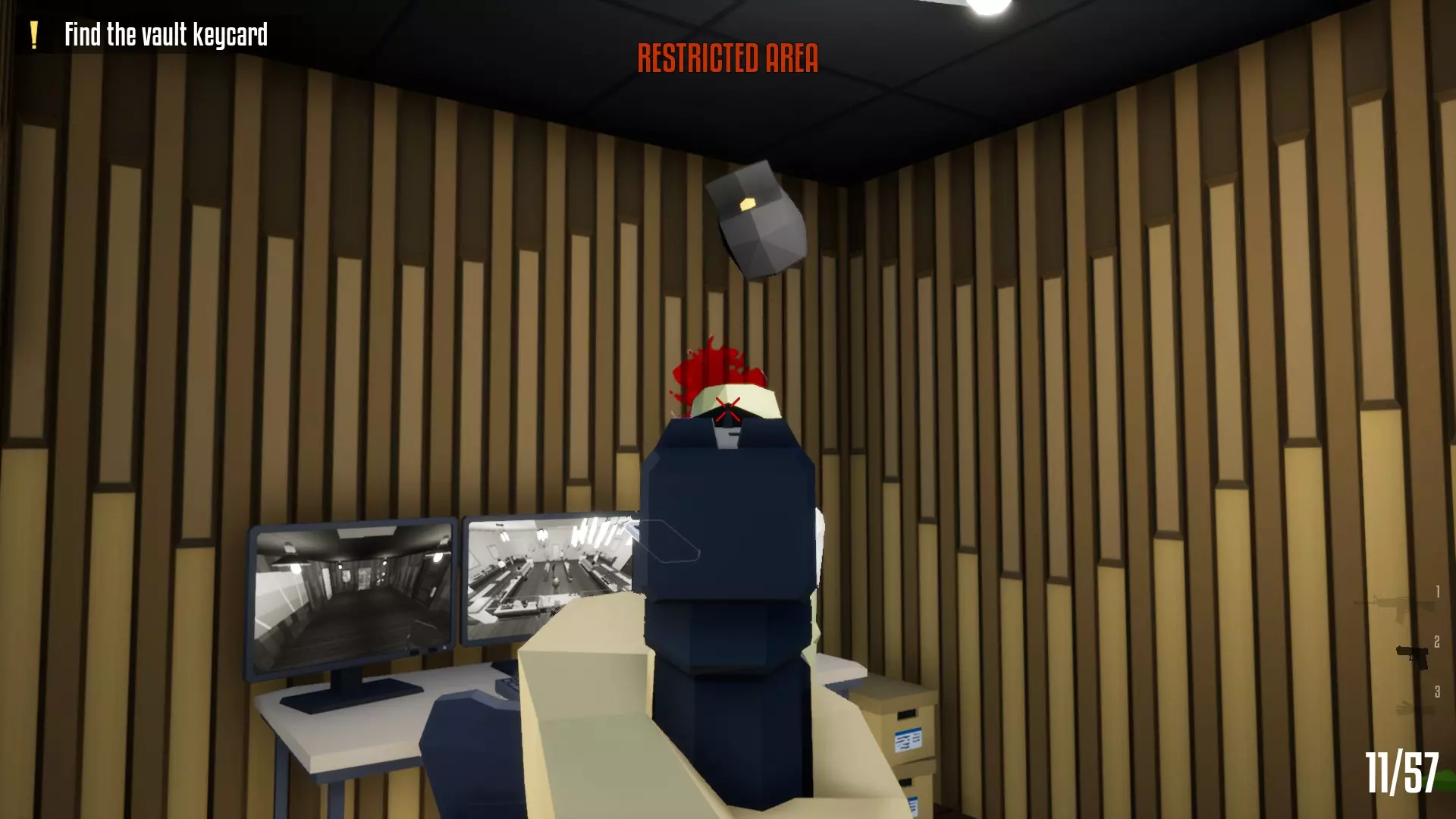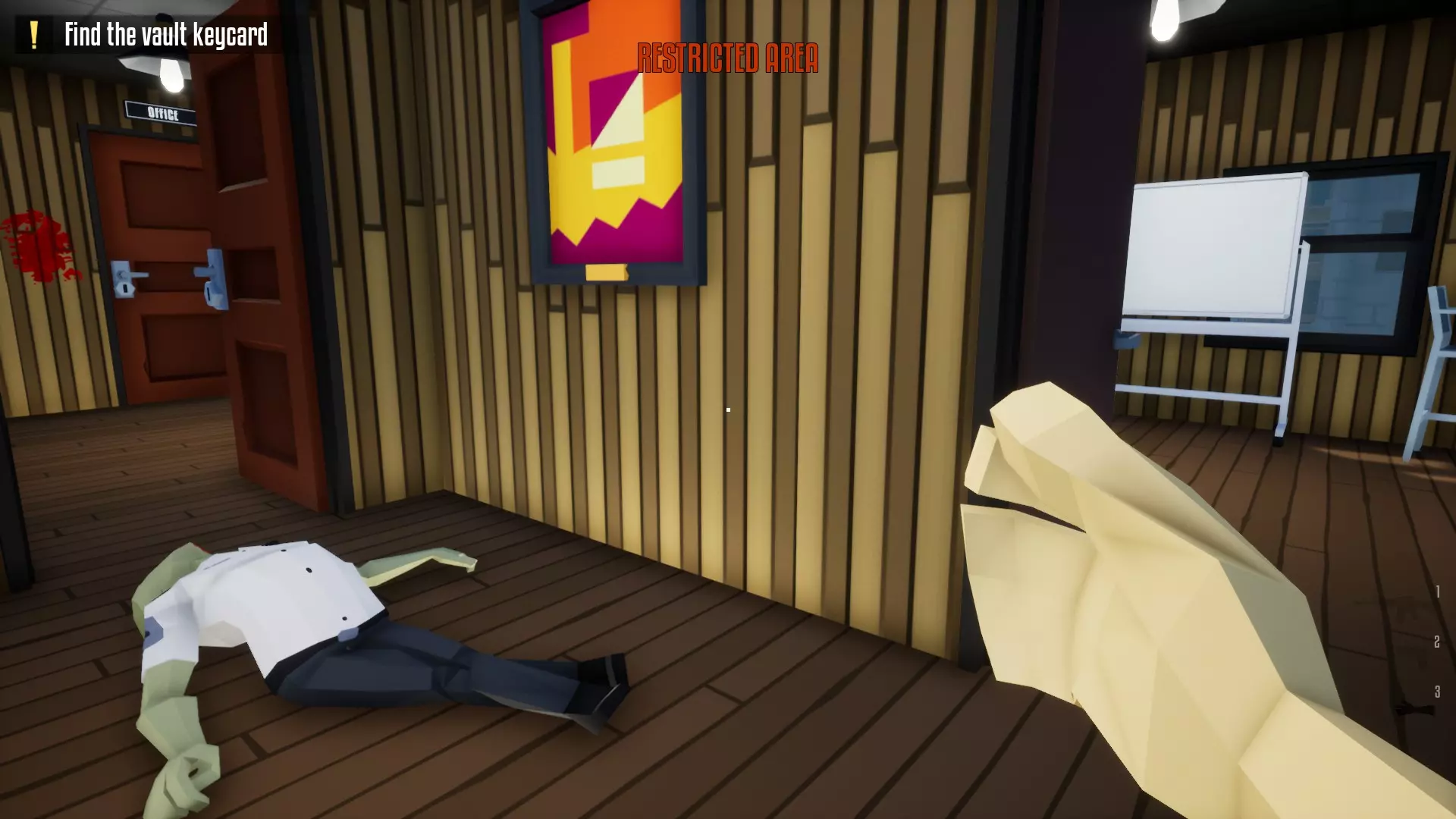 带上你的背包,去办公室搜刮钱财和保险库钥匙卡。