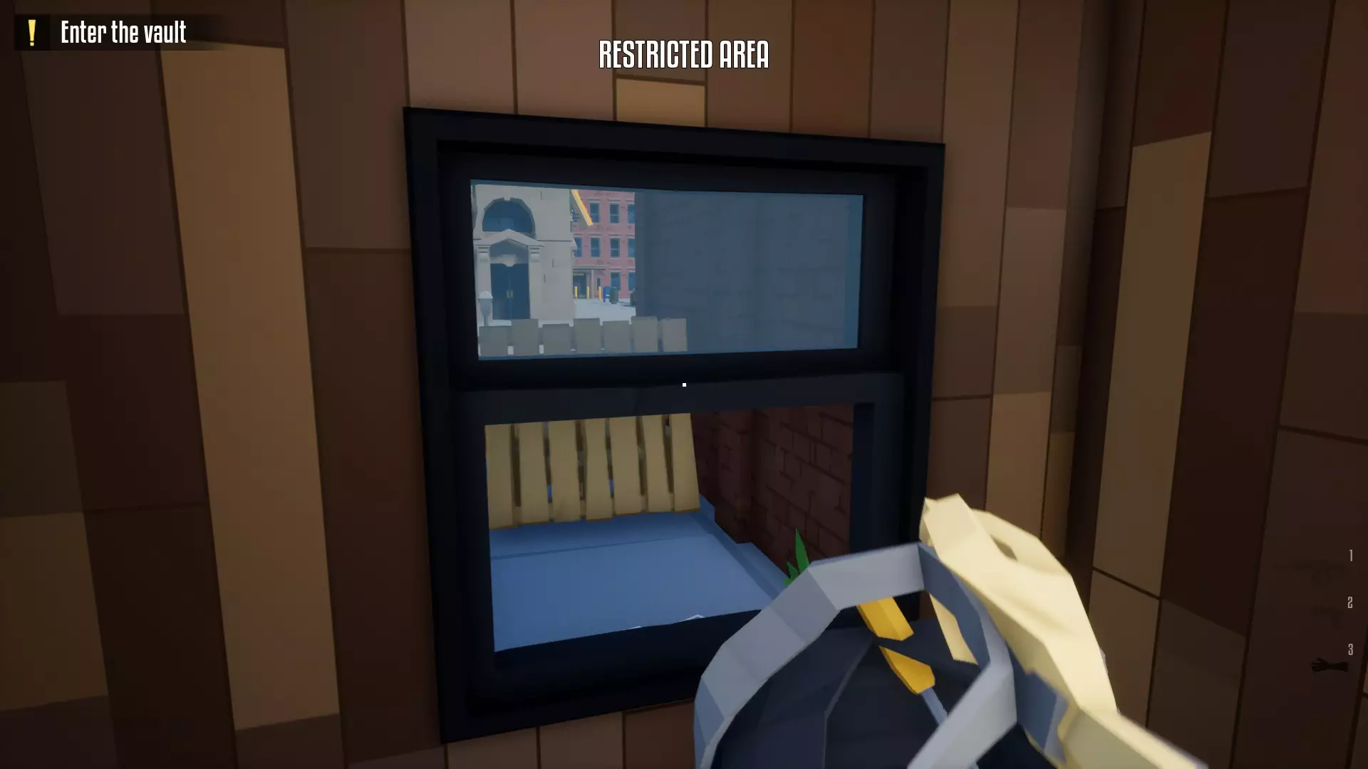 朝窗户射击2次(建议射击后间隔3-4秒)。守卫有时可能会闻声前来查看。