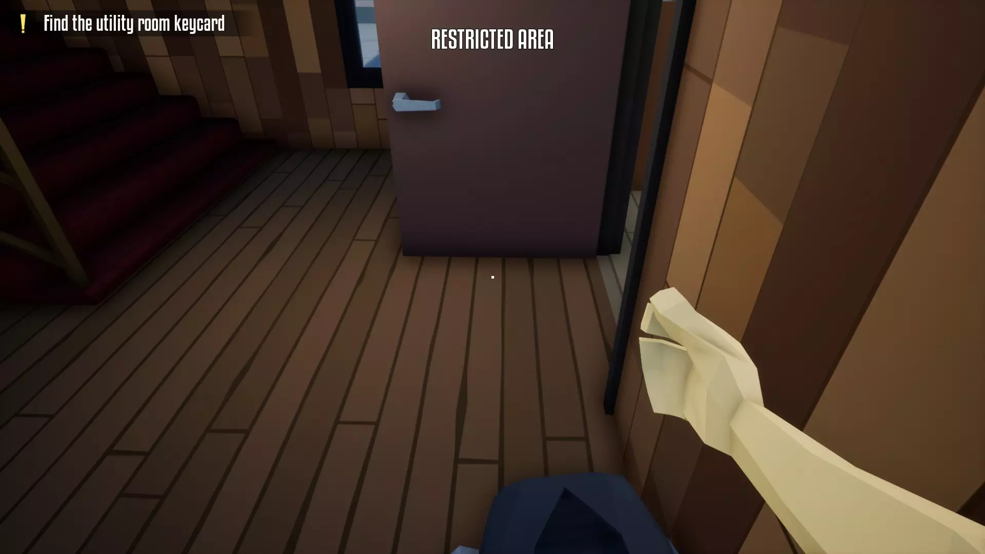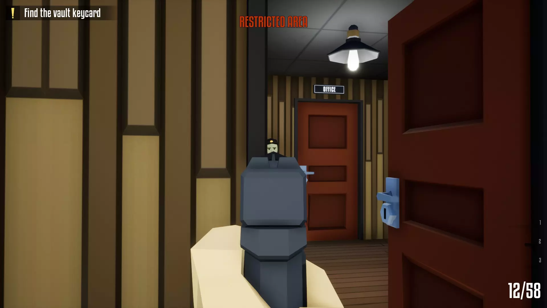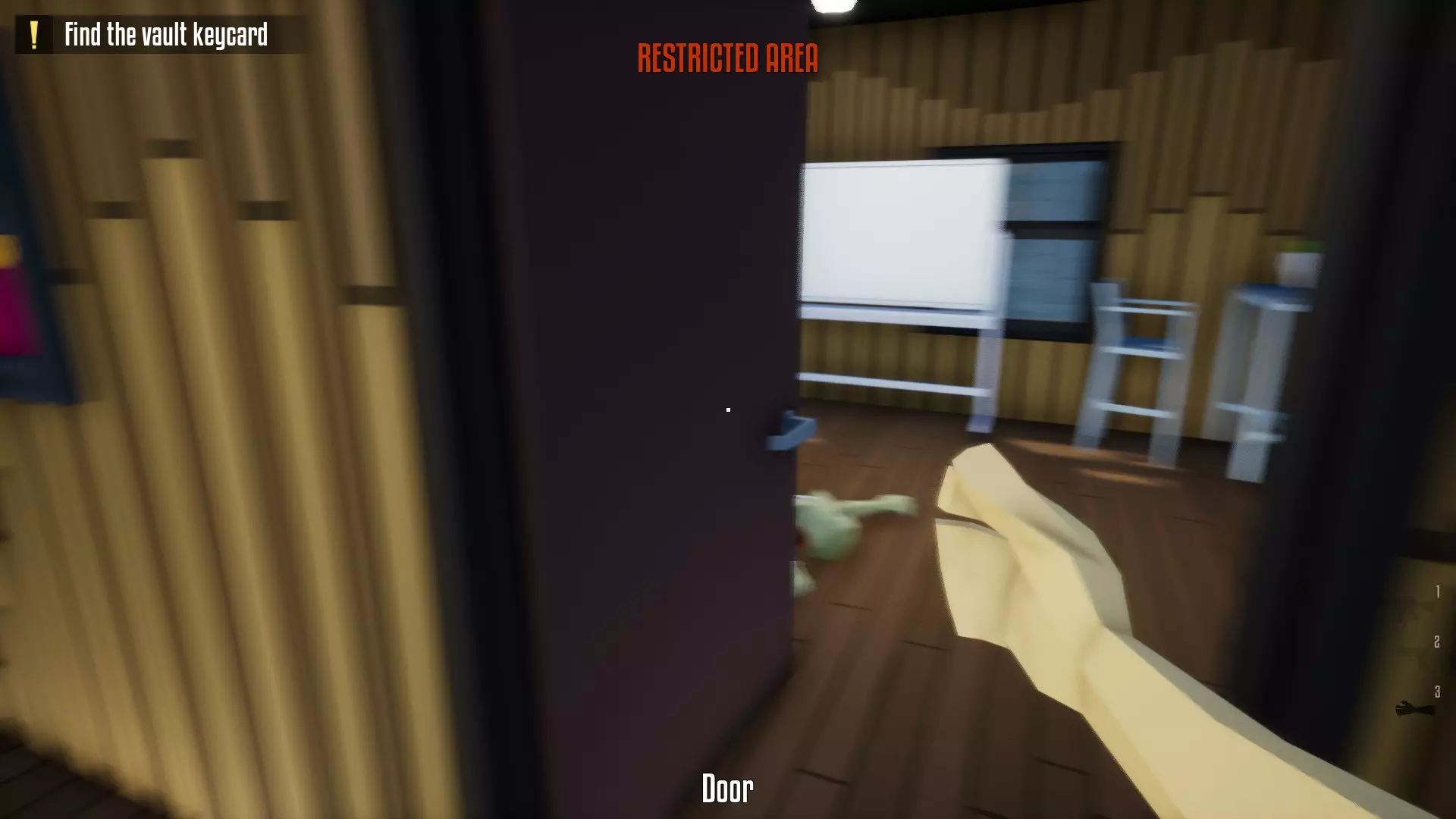 躲到门后,无论是办公室的门还是走廊的门。与经理互动后,会有守卫出现,标记为【!】