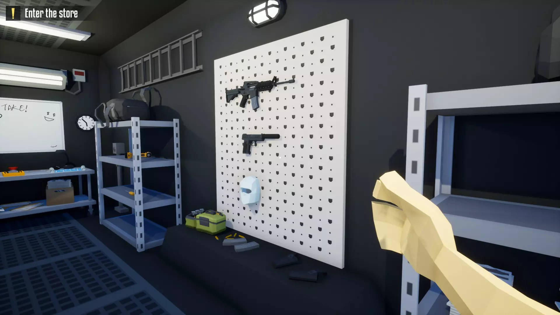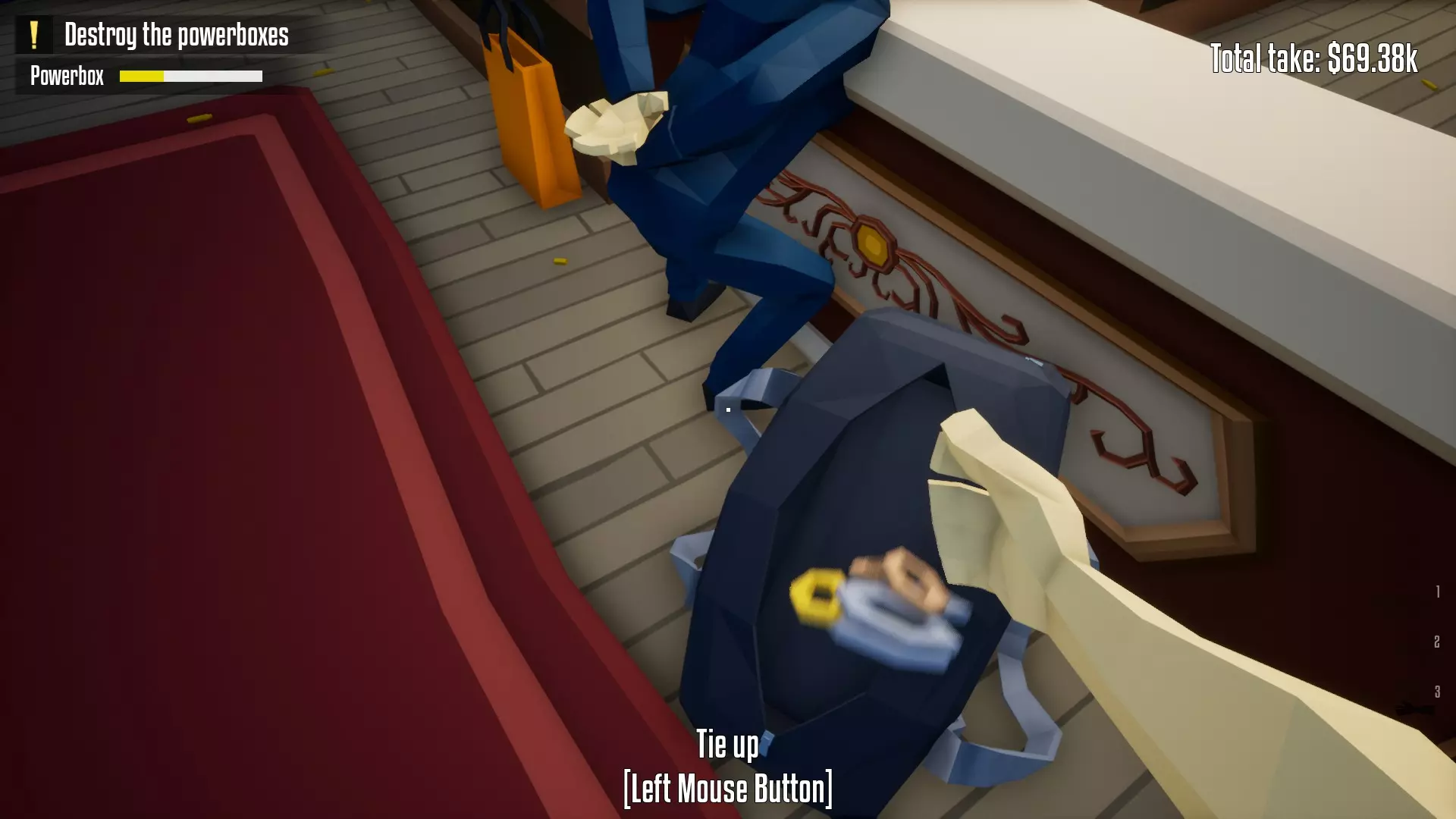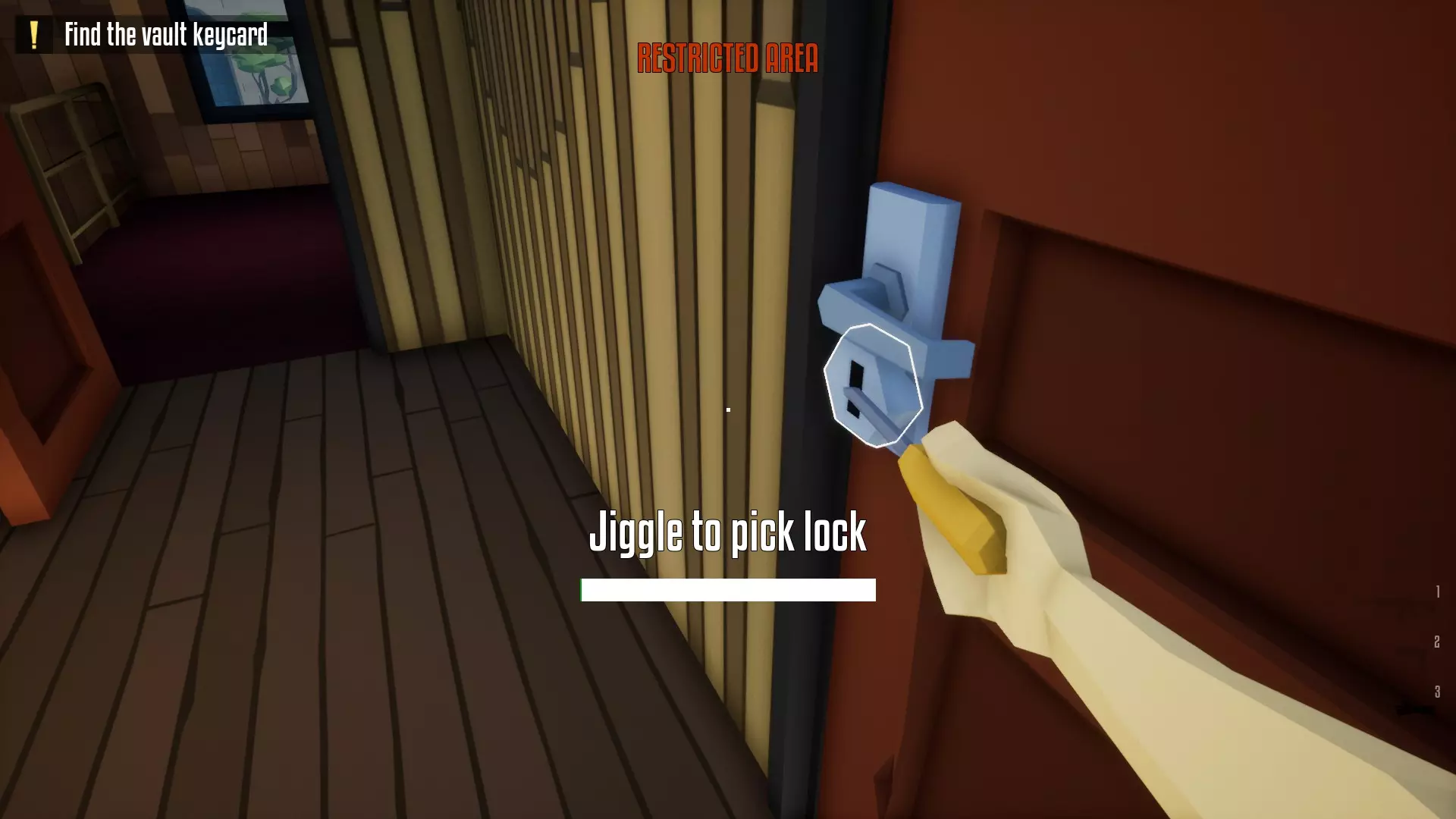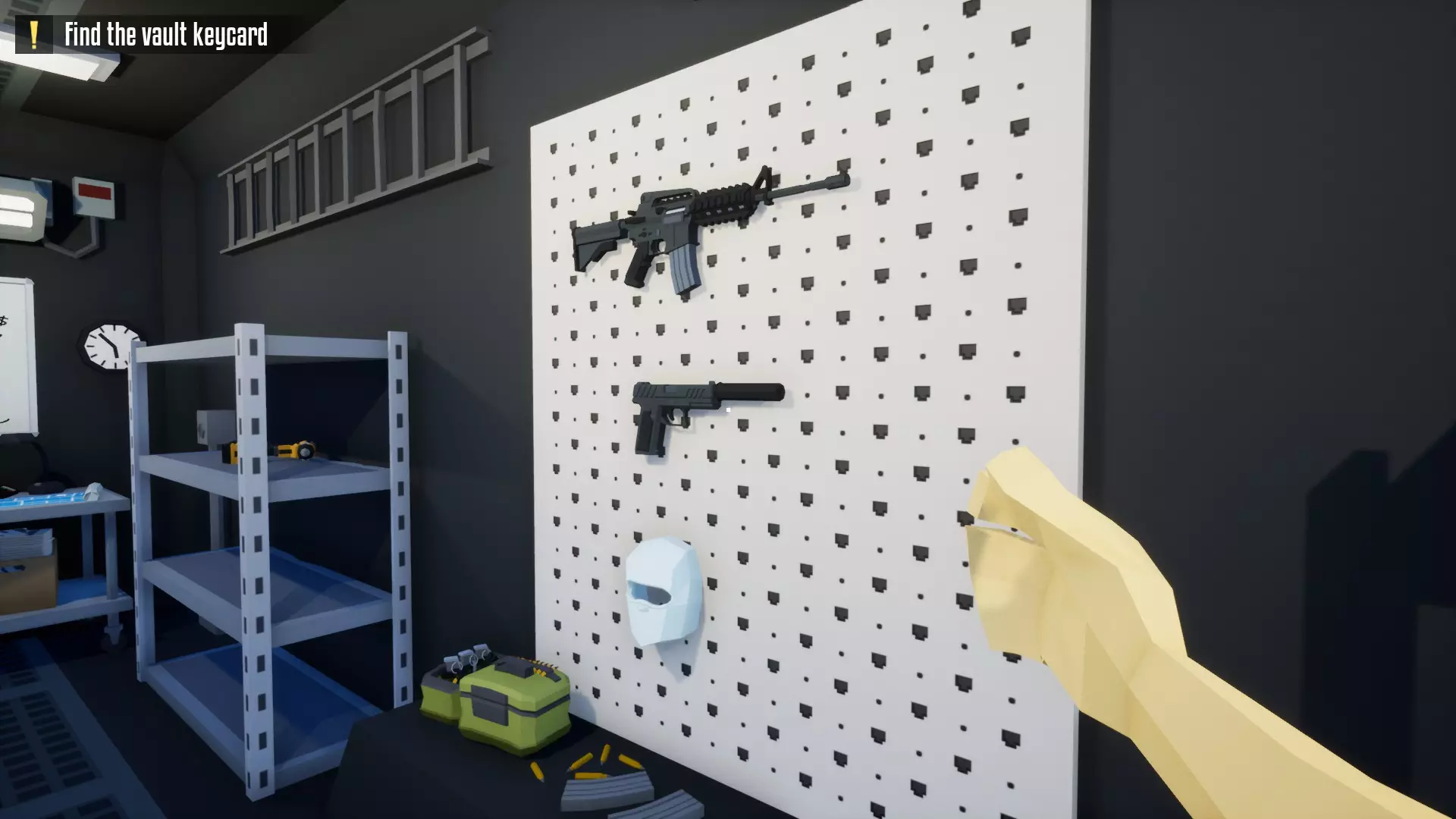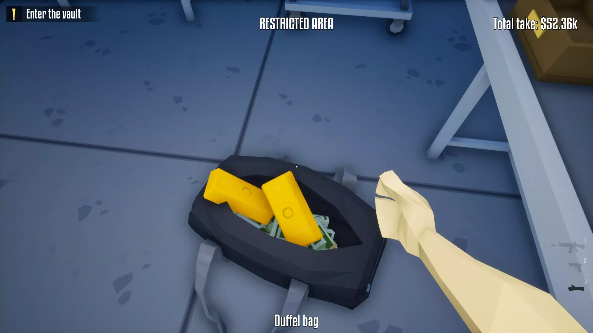 恭喜,保险库现已完全由你掌控!你可以随意撬锁开门并搜刮所有物品。不过,我建议你优先拿取项链、戒指和金表。