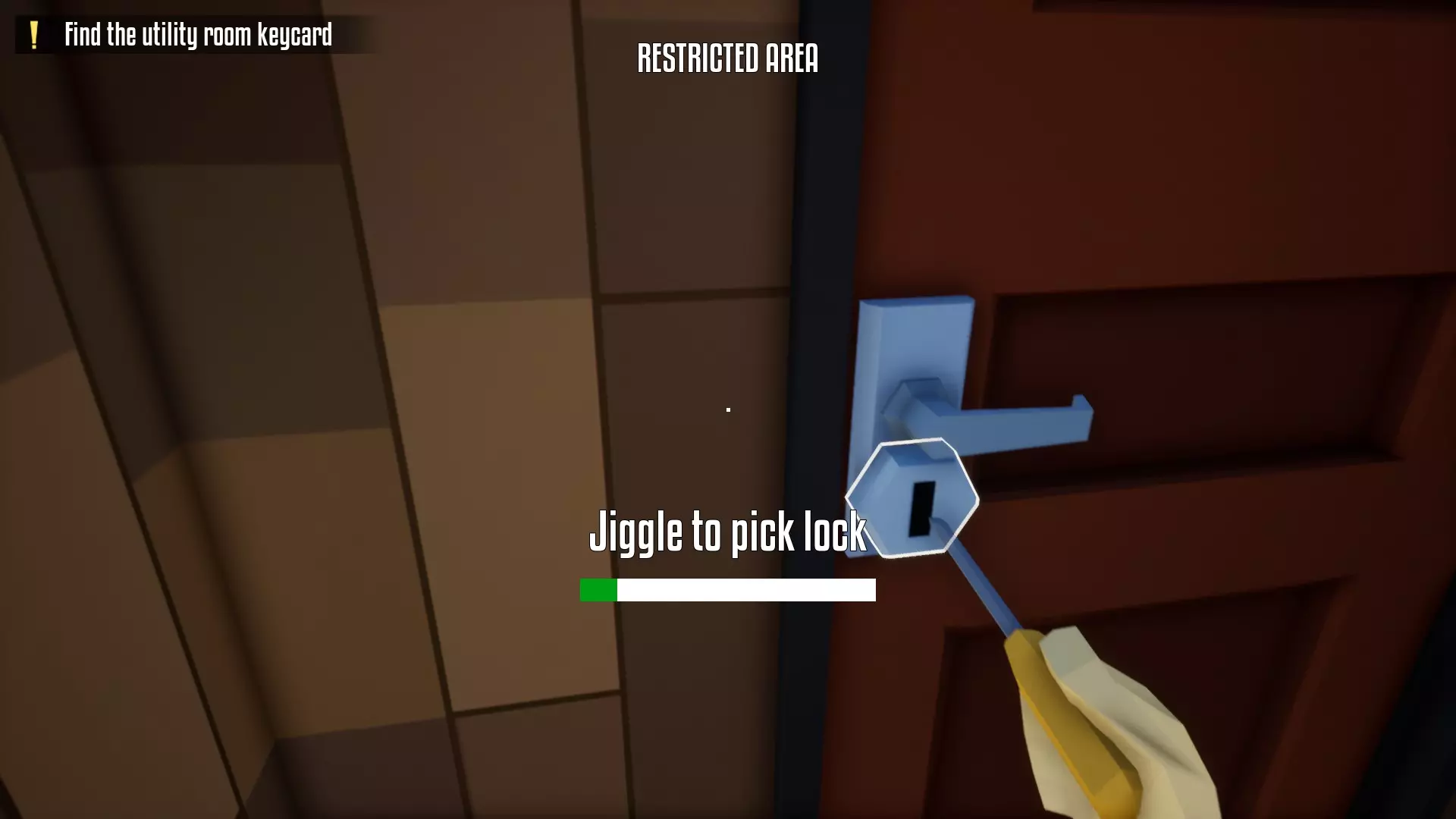 用撬锁工具打开那扇门后,让门保持敞开状态,暂时不要进去。