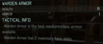 [2] 典狱长护甲——又称常规护甲3级。其功能与掠食者护甲基本相同,但有两个显著区别:生命值增加2点,护甲值增加1点。就生命值而言,提升了50%,听起来相当不错。至于那1点护甲值,简直是“神圣的缓冲保护”!减少1点伤害的效果堪称救命。这款护甲能为所有士兵提供额外的防护等级,且无需依赖任何特殊护甲类型。总的来说,如果你没有更偏好的特殊护甲,典狱长护甲就是一款全能装备。 装备小贴士:重型护甲 本节将介绍主要通过 proving ground 研发而非仅在 engineering bay 用补给购买的护甲。与掠夺者/典狱长护甲不同,这些护甲均需在试炼场单独制作,因此数量有限。重武器护甲