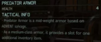 [1] 捕食者护甲——也就是常规护甲2级。在游戏初期,额外获得4点生命值的提升非常显著!具体来说,这能让新兵的生命值从4点翻倍到8点!当然,随着士兵等级提升,生命值的百分比增幅会逐渐降低,但无论如何,4点生命值都能挽救士兵的生命。 不仅如此!这款实用的护甲还增加了一个物品栏位!不过先别抱太大期望,每个士兵仍然限带1枚手榴弹(只有掷弹兵拥有2个手榴弹栏位)。即便如此,这极大地扩展了你的装备选择,现在大多数士兵都能同时携带一枚手榴弹和一件辅助物品。这让携带战斗扫描仪、拟态信标或特殊弹药变得轻而易举!购买一套,你的整个小队就能获得无限供应!我必须强调,对于捕食者/典狱长动力甲,一旦你从工程舱的莉莉·沈处购买,就拥有了无限使用权限,所有士兵都能装备。这意味着这是一项非常划算的补给投资。我之前玩过《幽浮:未知敌人/内部敌人》,当时需要单独购买每件装备,所以发现这一点时我感到非常惊喜。