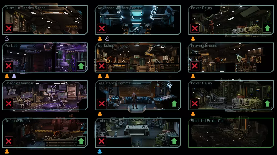 [2] 抵抗通讯站——提高你可连接的全球抵抗组织单元格上限(在很多方面类似于幽浮:未知敌人/幽浮:内部敌人中的卫星上行链路)。可容纳1名工程师以进一步提高联系上限。可升级以容纳第2名工程师。通用建筑,可按需建造多个。