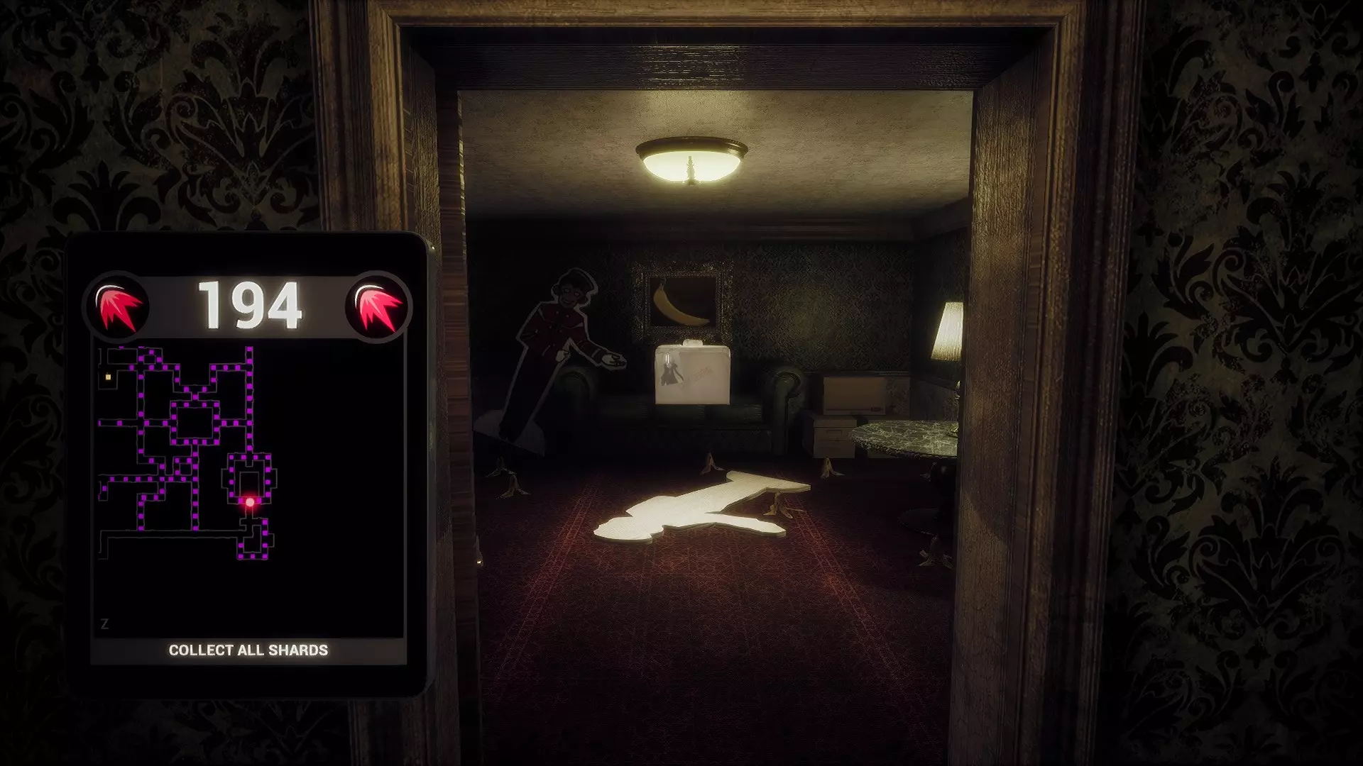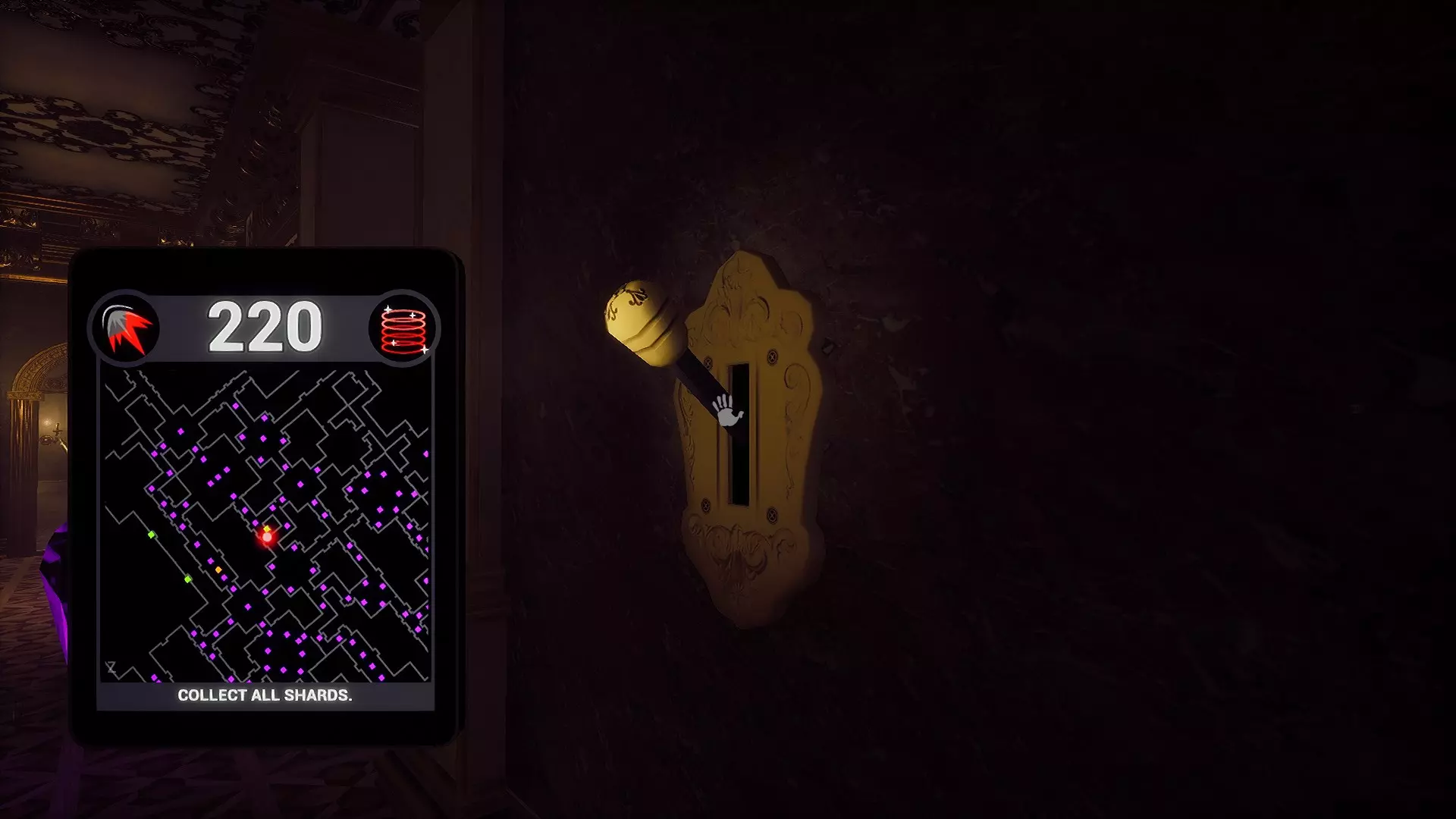 第二个秘密位于宅邸内部的左侧。与墙壁互动可使其升起。在为那张地图上看似错误的房间收集灵魂碎片时,请注意保持警惕。