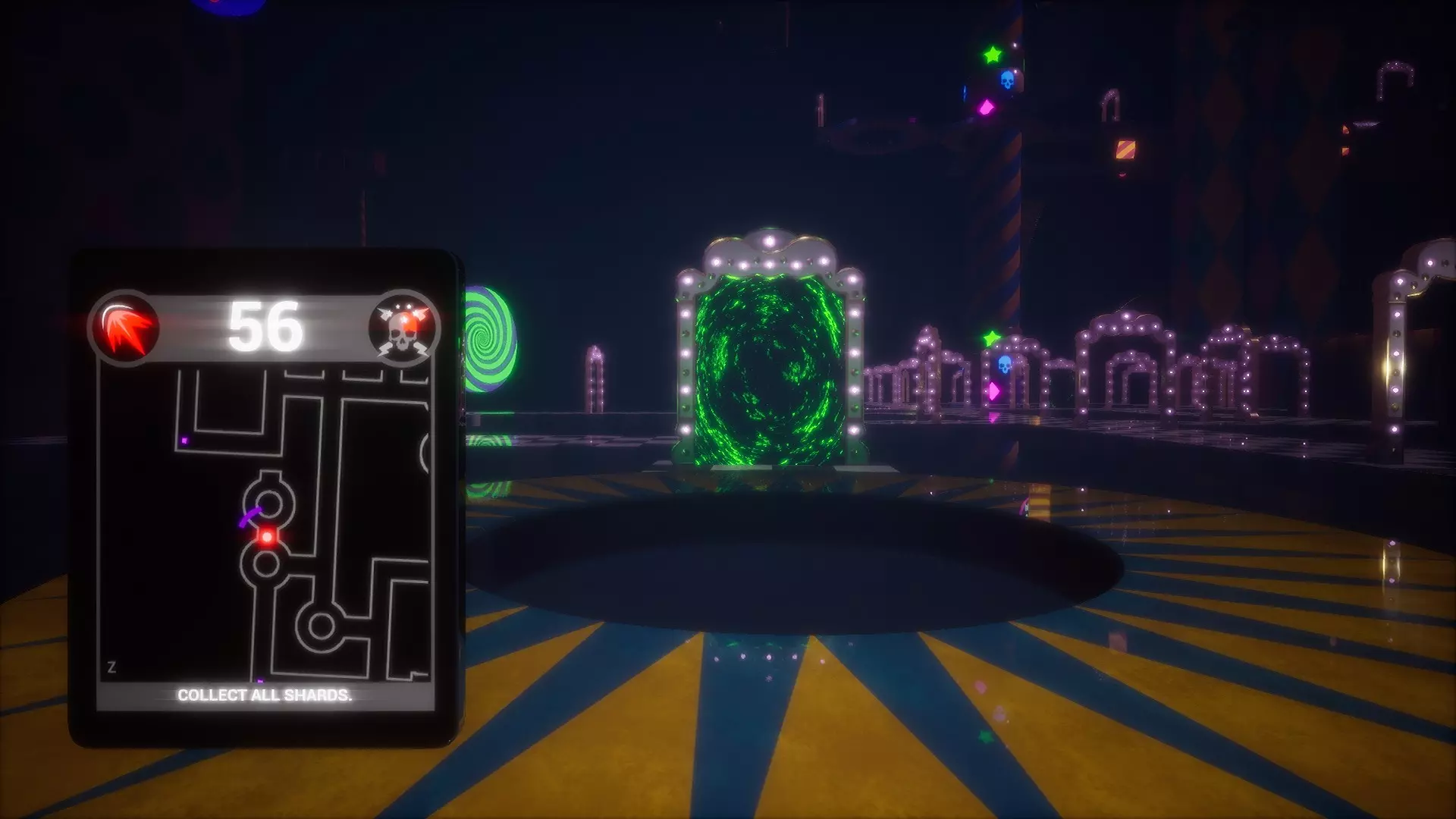 1号区域布满了传送门,这些传送门会将你传送到不同的地方(主要是上层和下层),但其中一个传送门会带你进入一个秘密房间。这个特定的传送门位于下层的右侧(在出口传送门的对面)。