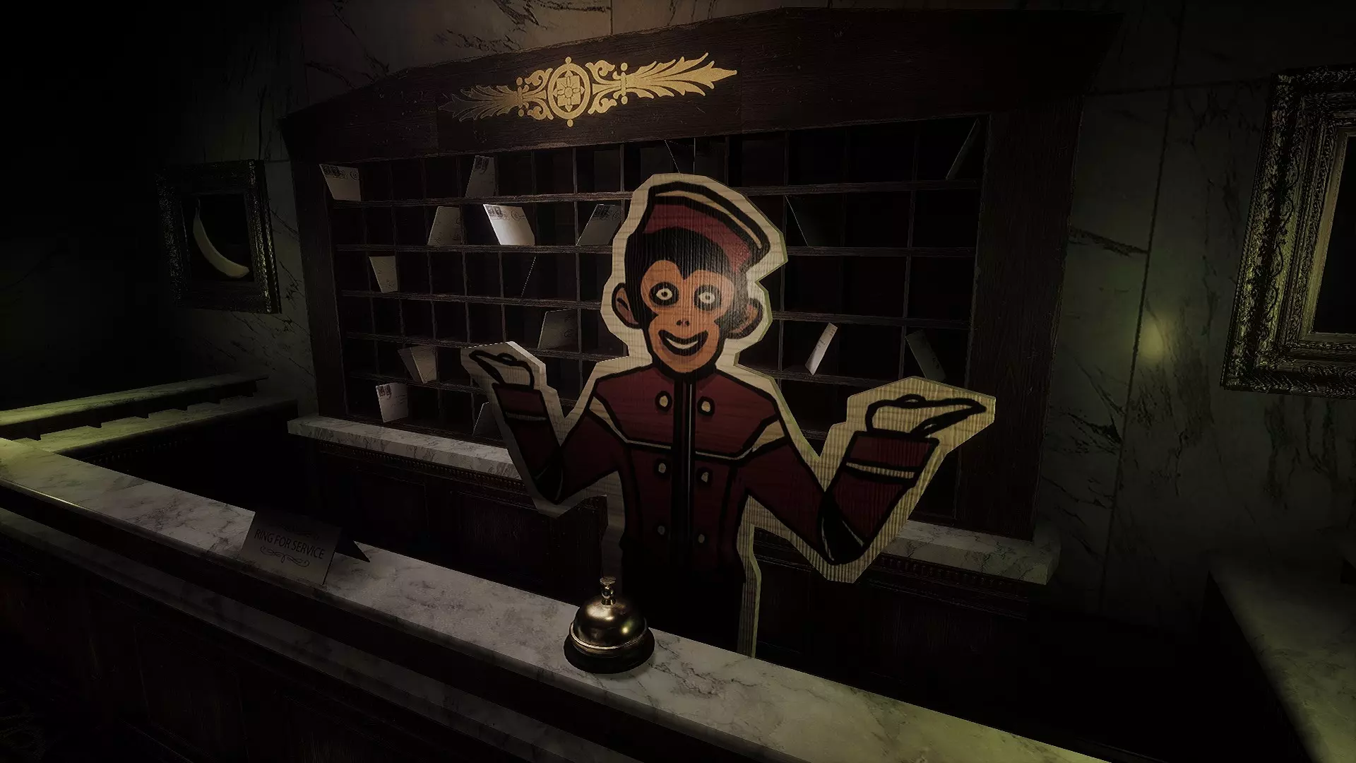 请服务!:拨打服务电话10次。 引用自S1Lver:电话会出现在【猴子的任务】关卡开始时的门厅里。如果拨打它十次,桌子下会弹出一个纸质猴子剪影,玩家将获得成就。