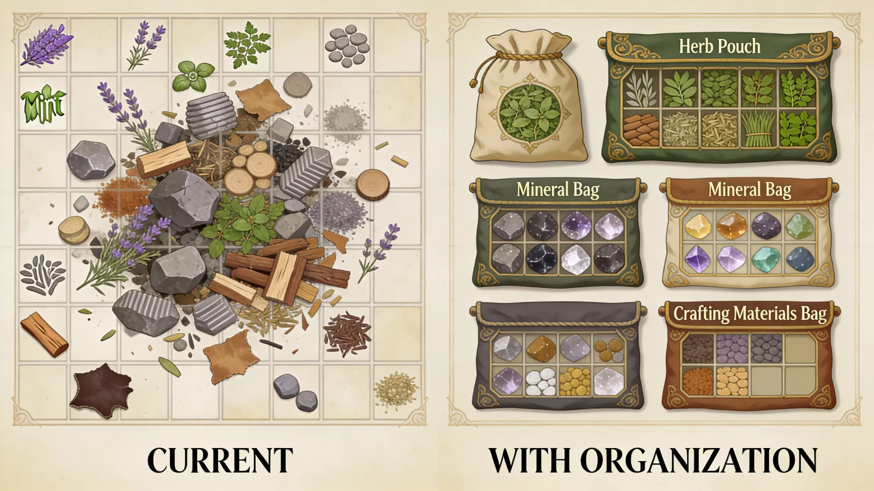 “让建造者能够看到自己正在建造的东西——相机自由是建造的基本要素,而非奢侈功能。” 请为我们添加草药袋和矿石袋来整理背包,毕竟我们大半时间都在收集材料。