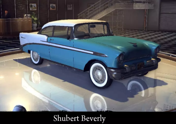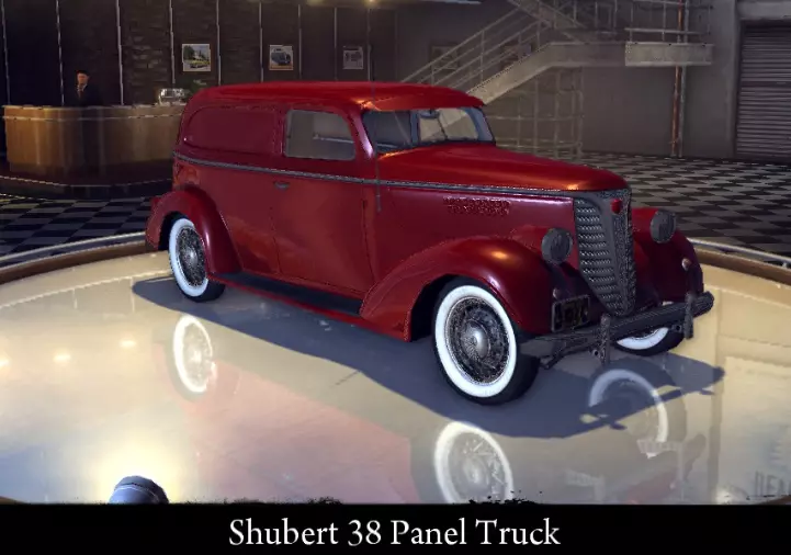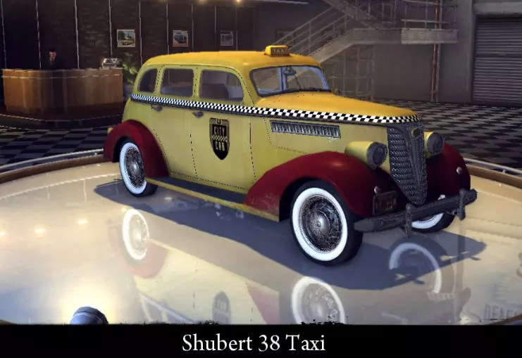 有趣的事实: - 乔的女友拥有一辆紫色的这种车。 - 在《黑手党:失落的天堂》中它被称为舒伯特Extra Six。 - 在DLC“乔的冒险”中,一名加油站工作人员拥有舒伯特38。 - 其原型是1938年款雪佛兰Master Sedan。 舒伯特38出租车 舒伯特38出租车是《黑手党2》中的一款大型四门廉价轿车。由帝国湾出租车公司使用。在技术层面上是舒伯特38的精确复制品。 标准参数: 功率 63千瓦 最高速度132 千米/小时 重量 1420 千克 改进后性能: 功率 75 千瓦 最高速度 139 千米/小时 重量 1420 千克 【运动改装】改进: 功率 75 千瓦 最高速度 139 千米/小时 重量 1300 千克 【压缩机安装】改进: 功率 91 千瓦 最高速度 147 千米/小时 重量 1300 千克