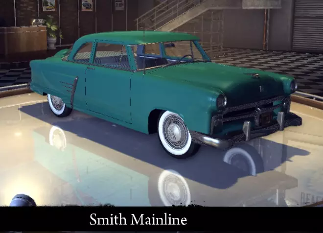 有趣的事实: *其原型为1953年款雪佛兰科尔维特。 史密斯V8 史密斯V8是《黑手党2》中的一款低价四门轿车。 标准性能: 功率 62千瓦 最高速度 128公里/小时 重量 1166千克 升级后性能: 功率 76千瓦 最高速度 133公里/小时 重量 1166千克 “运动改装”升级: 功率 76千瓦 最高速度 133公里/小时133 千米/小时 重量 1040 千克 【压缩机安装】强化: 功率 94 千瓦 最大速度 141 千米/小时 重量 1040 千克