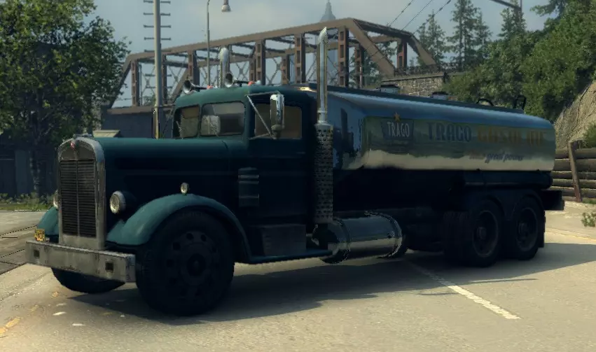 有趣的事实: - 原型为1949年款肯沃斯524。 - 未在游戏的车辆百科中出现。 汉克B型油罐车 用于运输燃料的油罐卡车。特拉戈石油公司使用该运输工具来运送燃料。 标准特性: 功率:240千瓦 最高速度:112千米/小时 重量:12870千克