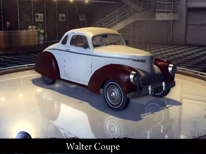 有趣的事实: *其原型为Tucker Torpedo。 Walter Coupe 《黑手党2》中的轿跑车型。 标准性能: 功率 47千瓦 最高速度 97公里/小时 重量 942公斤 强化性能: 功率 56千瓦 最高速度 107公里/小时 重量 942公斤 “运动改装”强化: 功率 59千瓦 最高速度107 千米/小时 重量 870 千克 【压缩机安装】强化: 功率 88 千瓦 最大速度 145 千米/小时 重量 870 千克