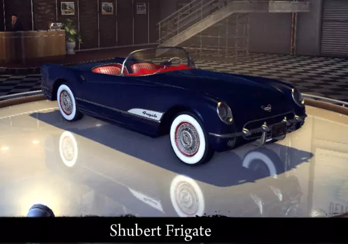 有趣的事实: - 其原型是1956年款雪佛兰Bel Air Hardtop、1956年款别克Roadmaster Riviera和1957年款庞蒂亚克Chieftain Catalina的混合体。 - 1951年电台播放了这款汽车的广告。 舒伯特护卫舰 双座运动型汽车。较高的性能升级成本由出色的操控性和快速的速度所弥补! 标准特性: 功率:112千瓦 最高速度:168 千米/小时 重量 1293 千克 改进后性能: 功率 112 千瓦 最高速度 175 千米/小时 重量 1293 千克 【运动改装】改进: 功率 112 千瓦 最高速度 175 千米/小时 重量 1160 千克 【压缩机安装】改进: 功率 112 千瓦 最高速度 184 千米/小时 重量 1160 千克