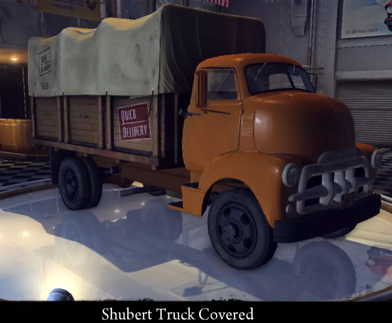 有趣的事实: 原型为1954年款雪佛兰COE。 舒伯特卡车篷布款 这是一款带有篷布货厢的卡车,用于快速运输货物。由【速达快运】公司("Quick Delivery")使用。 标准参数: 功率:120千瓦 最高速度:101公里/小时 重量:4500-4600公斤