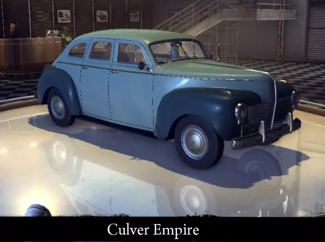 有趣的事实: - 原型为1940款克莱斯勒纽约客轿车。 - 在游戏文件中名为Ulver Newyorker。 Culver Empire Police Special Culver Empire的警用版本。能达到不错的速度。 功率 122千瓦 最高速度 155公里/小时 重量 1750公斤