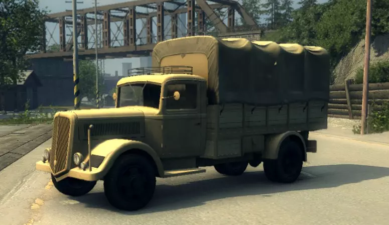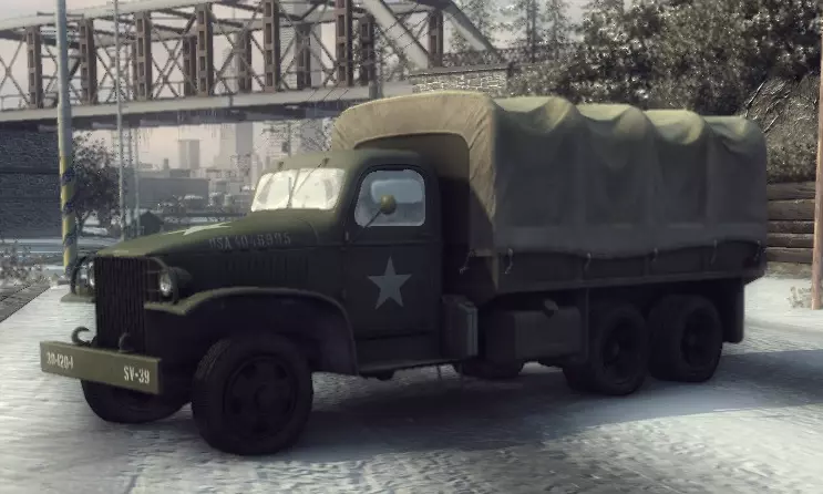 有趣的事实: 原型为1956年款庞蒂亚克Club de Mer。 【无法使用的载具】 此类载具指的是实际在游戏中出现过(至少一次),但技术上玩家无法使用的载具。 西西里军用卡车 仅在“历史故乡”章节中出现的军用卡车。 标准性能参数: 功率:60千瓦 最高速度:83千米/小时 重量:2750千克 (可在“重操旧业”和“战争奖杯”模式中使用)