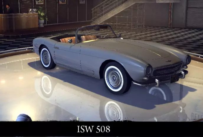 有趣的事实: 原型为1940年款克莱斯勒纽约客轿车。 ISW 508 德国小型豪华轿车,配备强劲发动机和优雅车身。其主要特点是不会出现在普通交通中,但会出现在希尔伍德天文台区域。 标准性能参数: 功率 111千瓦 最高速度 194公里/小时 重量 1315公斤 升级后性能参数: 功率 134千瓦 最高速度194 千米/小时 重量 1315 千克 【运动改装】强化: 功率 134 千瓦 最高速度 194 千米/小时 重量 1215 千克 【压缩机安装】强化: 功率 164 千瓦 最高速度 212 千米/小时 重量 1215 千克